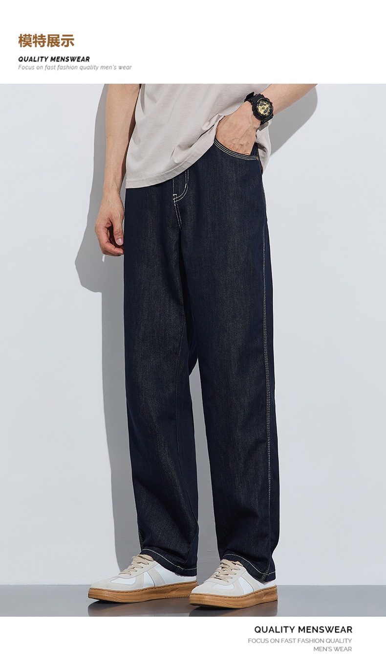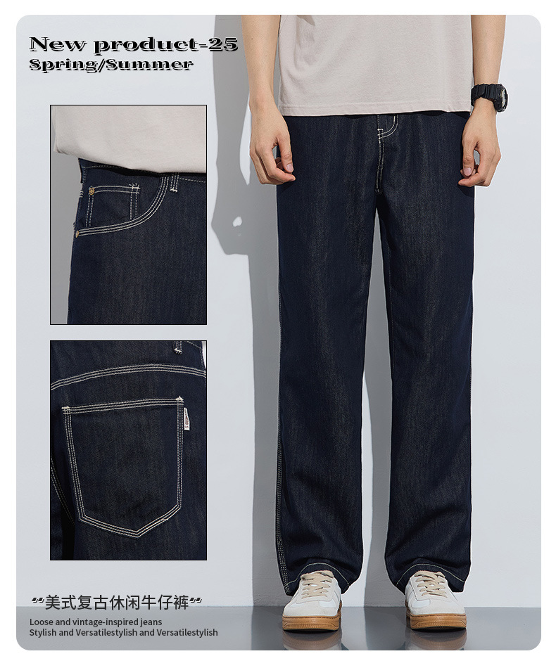 Lyocell Tencel 오리지널 컬러 얇은 청바지 남성용 2025 여름 새로운 색상 방지 느슨한 캐주얼 스트레이트 바지스토어 가기