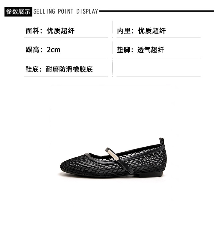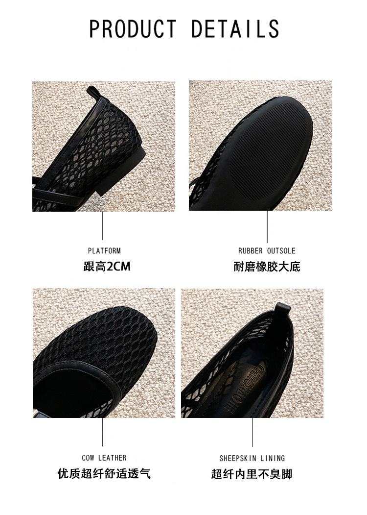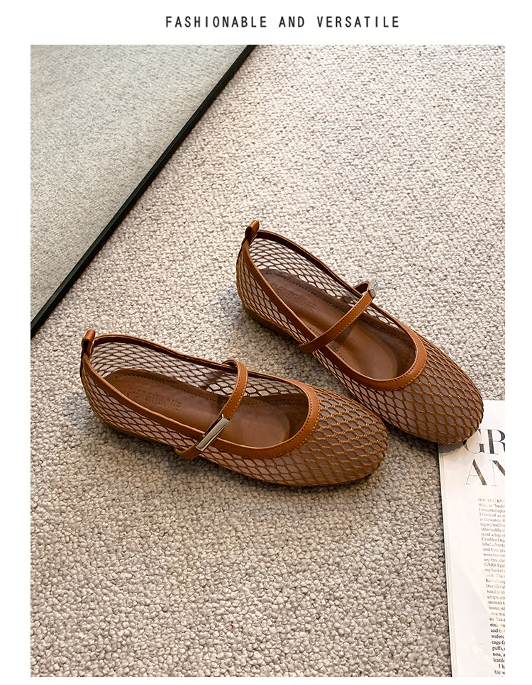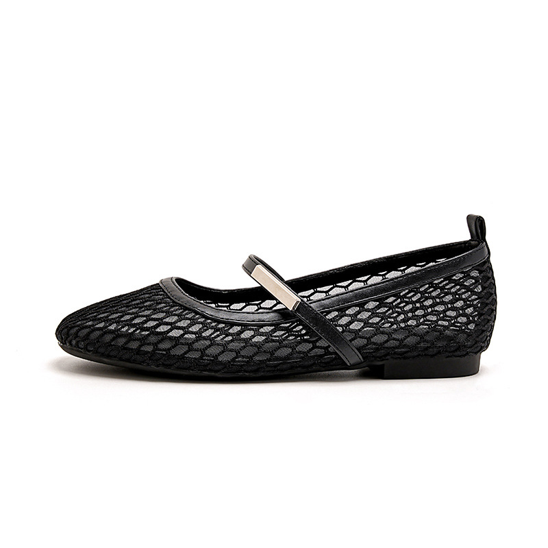 여성용 소프트솔 한국 스타일 메리제인 슈즈 2025 여름 신상품, 라운드 토 플랫 슈즈, 메쉬 소재