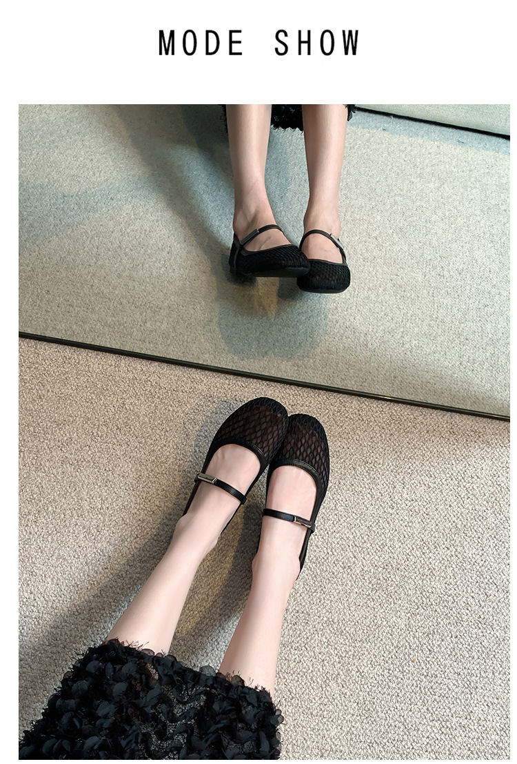 여성용 소프트솔 한국 스타일 메리제인 슈즈 2025 여름 신상품, 라운드 토 플랫 슈즈, 메쉬 소재스토어 가기