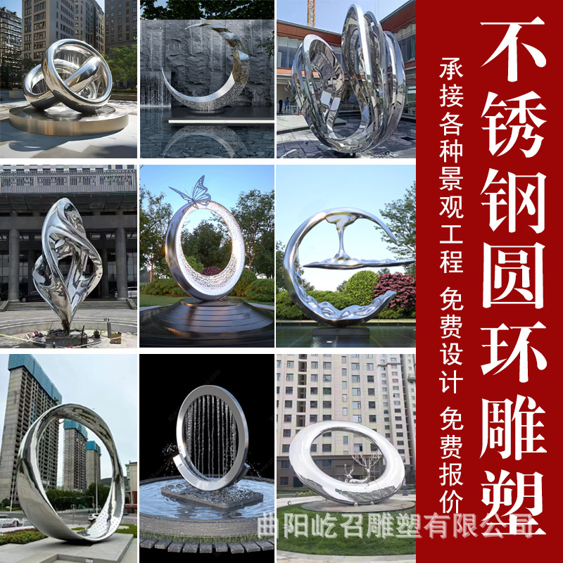 야외 대형 스테인레스 스틸 링 달 조각 금속 거울 빛나는 스프레이 판매 부서 물 풍경 대형 장식품스토어 가기