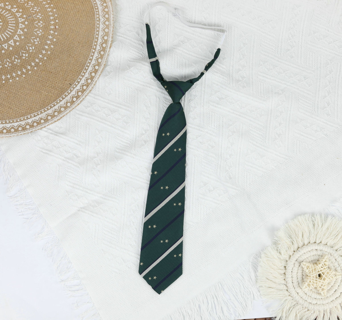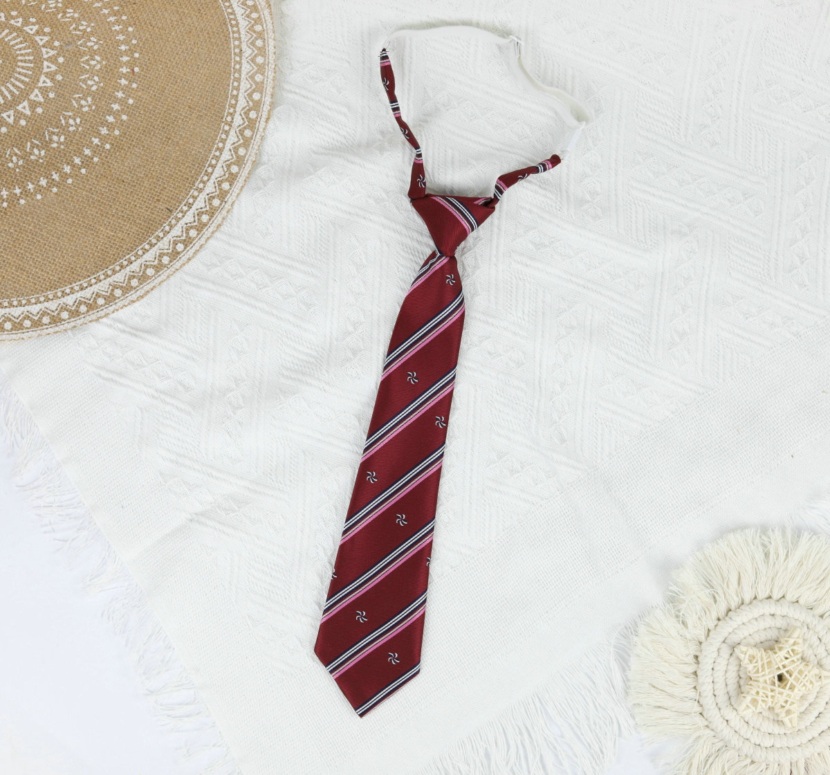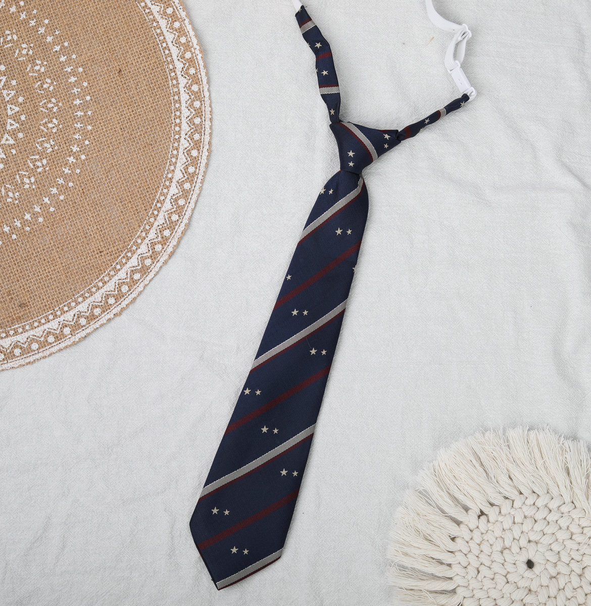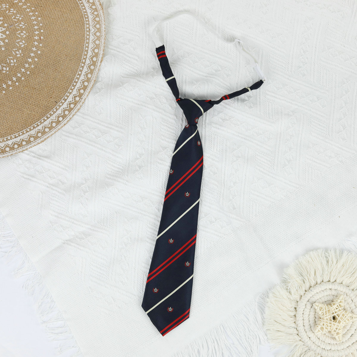 • 작은 왕관 흰색 줄무늬 고무줄 넥타이