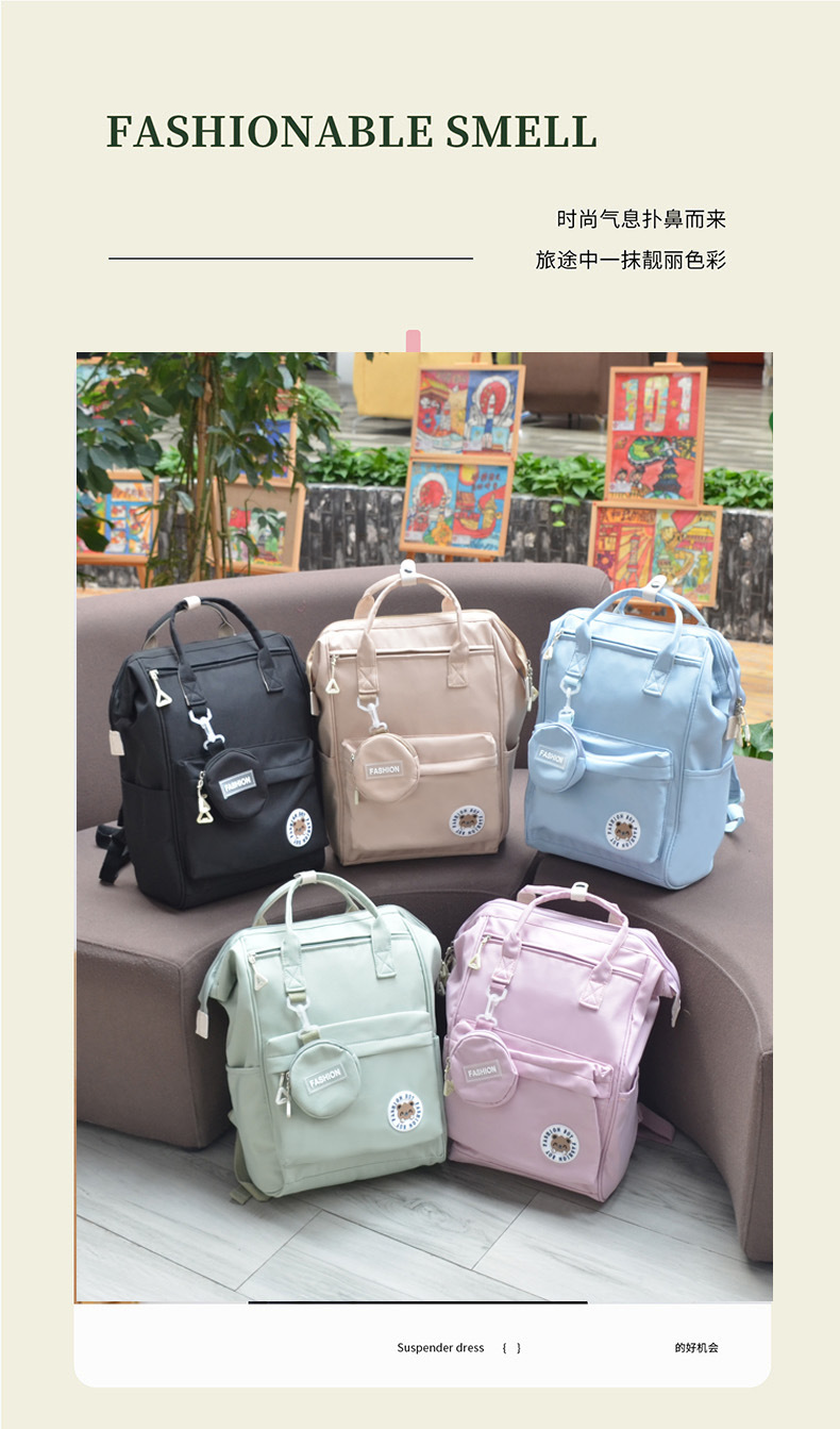 새로운 일본과 한국 스타일의 학생 학교 가방 단색 간단한 캐주얼 여행 배낭 대학 스타일 휴대용 방수 배낭스토어 가기