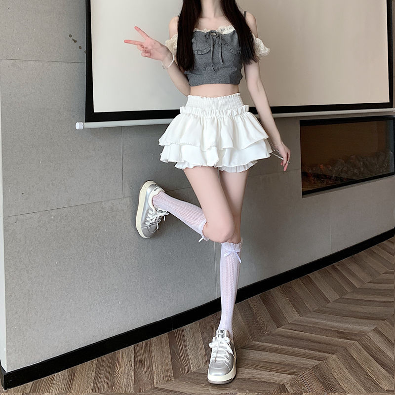 여성을위한 흰색 스커트 여름 2024 새로운 발레 대학 스타일 케이크 스커트 미니 스커트 투투 스커트 플리츠 스커트