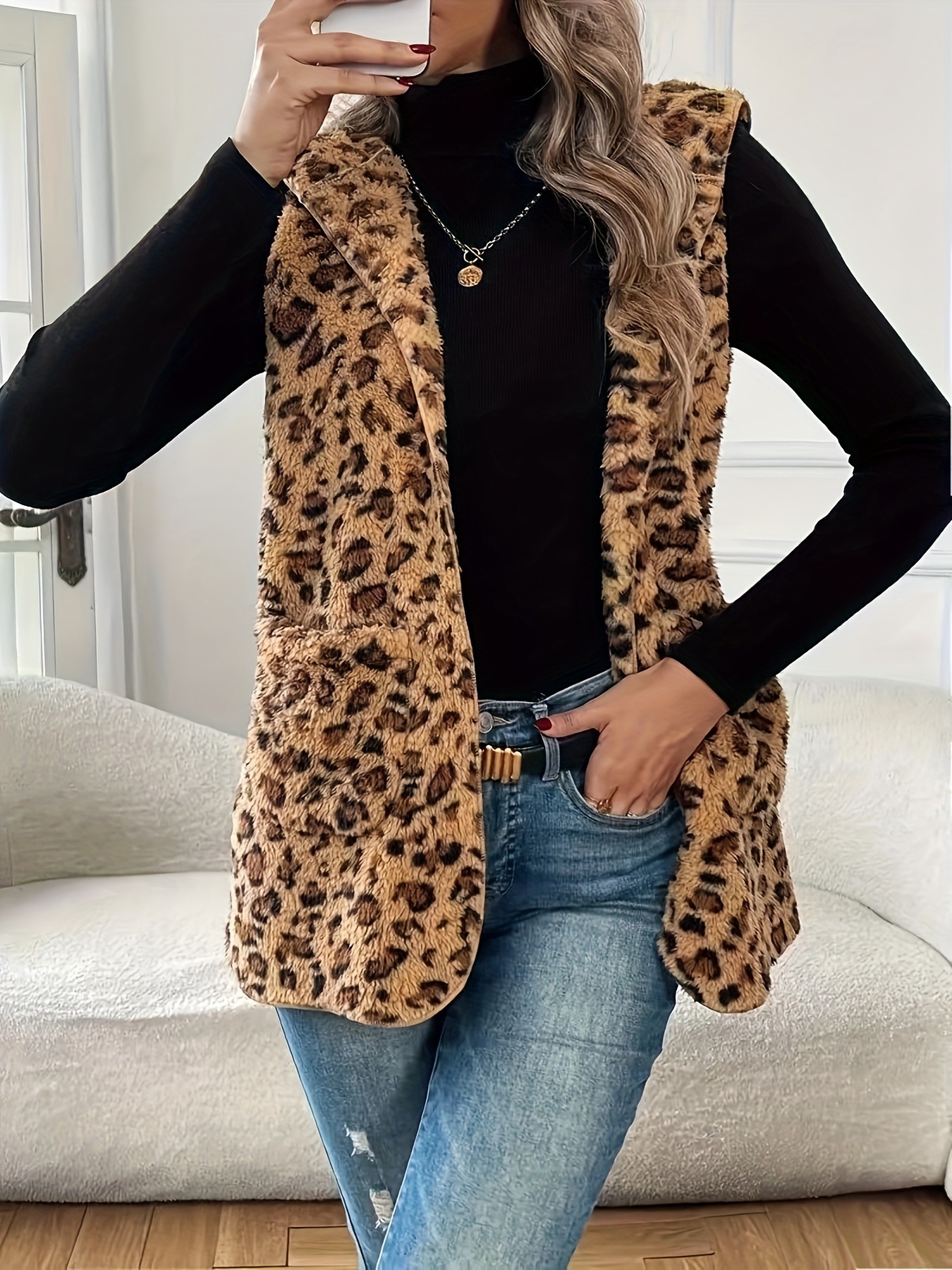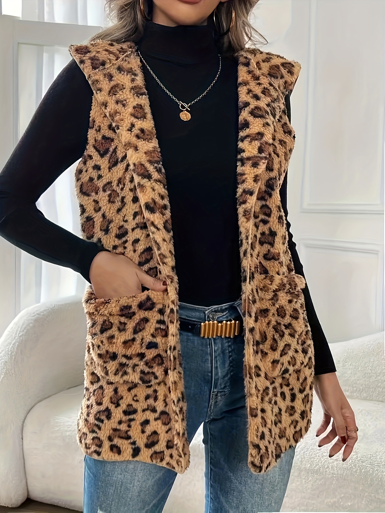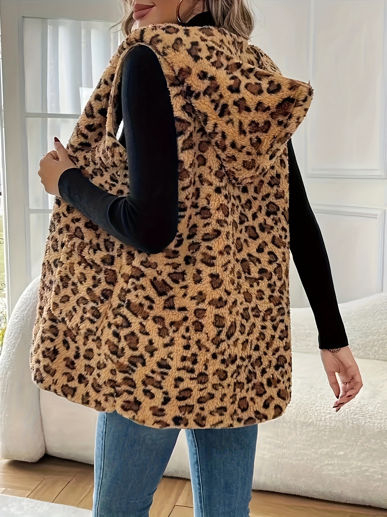 유럽과 미국의 국경 간 인기 판매 표범 인쇄 양면 플러시 캐주얼 여성 가을, 겨울 조끼 독립 스테이션 대외 무역스토어 가기