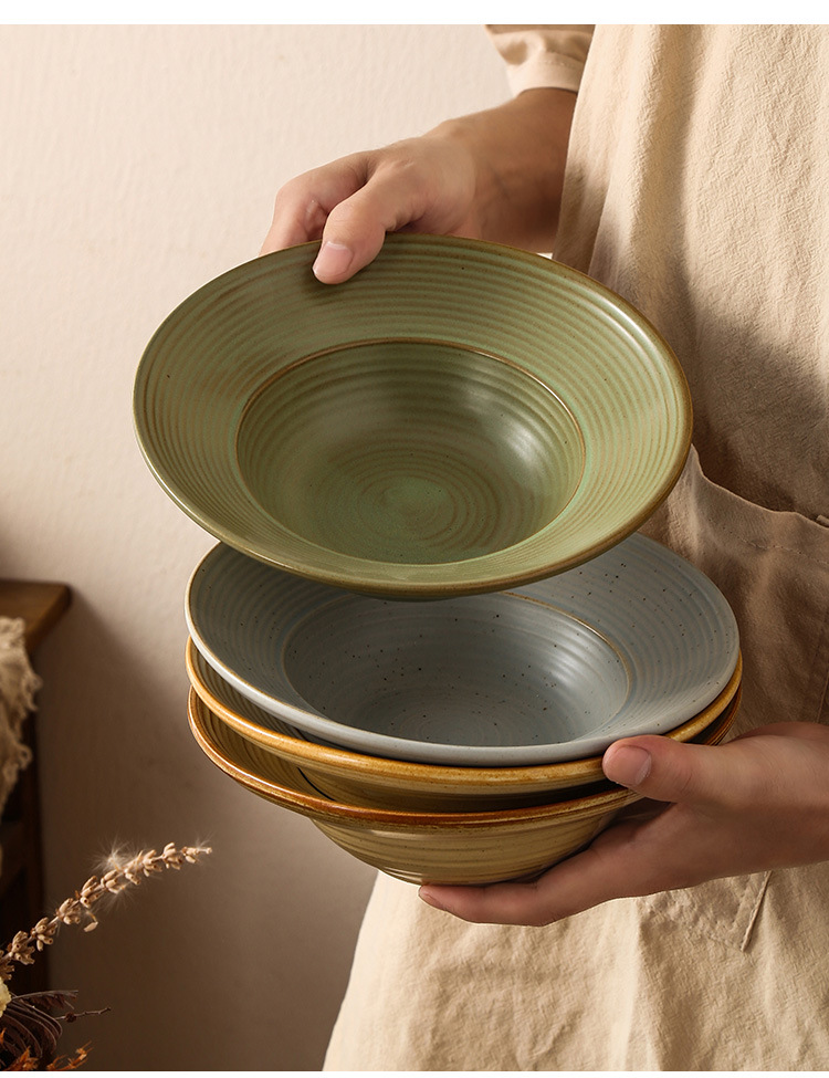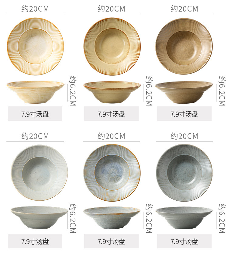 복고풍 스타일의 가마에서 만든 두꺼운 도자기 식기, 나사형 밀짚모자 그릇, 경사진 입구의 작은 우유 주전자, 레스토랑 간식, 전골 디핑 접시스토어 가기