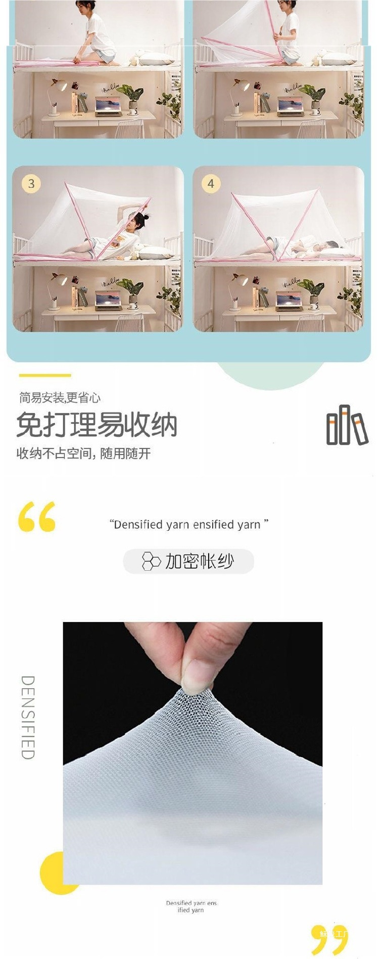 접이식 모기장, 휴대용 학생 기숙사 상단 침대, 2025년 새로운 인터넷 연예인 간단한 암호화 가정용 설치 불가스토어 가기