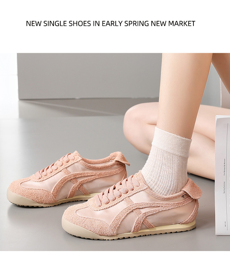 2025 봄과 여름 새로운 복고풍 캐주얼 스포츠 포레스트 검프 신발 정품 가죽 얼음 실크 새틴 통기성 메쉬 육군 훈련 신발 여성을위한