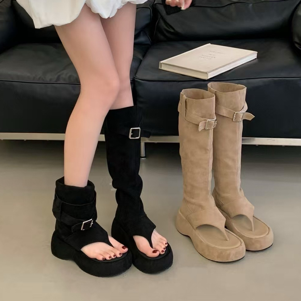 두꺼운 밑창의 헤링본 플립플롭 샌들, 키가 큰 여성용 플립플롭, 투웨어 5cm 여름 인터넷 연예인 여름 로마 부츠