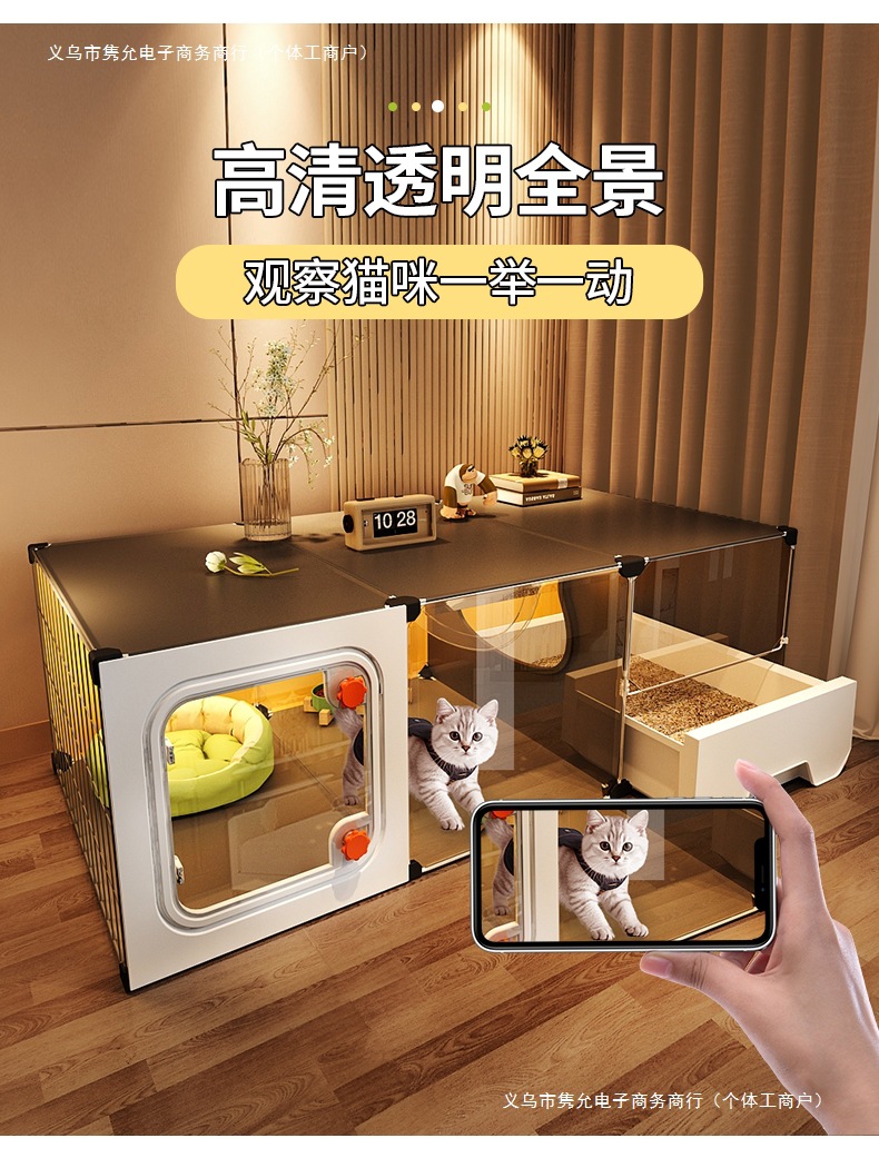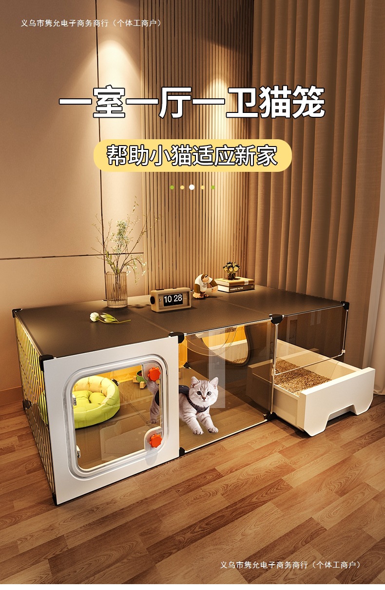 고양이 케이지, 가정용 실내 고양이 둥지, 고양이 화장실, 일체형 소형 아파트, 공간 절약형, 침실 1개, 거실 1개, 욕실 1개, 고양이 빌라스토어 가기