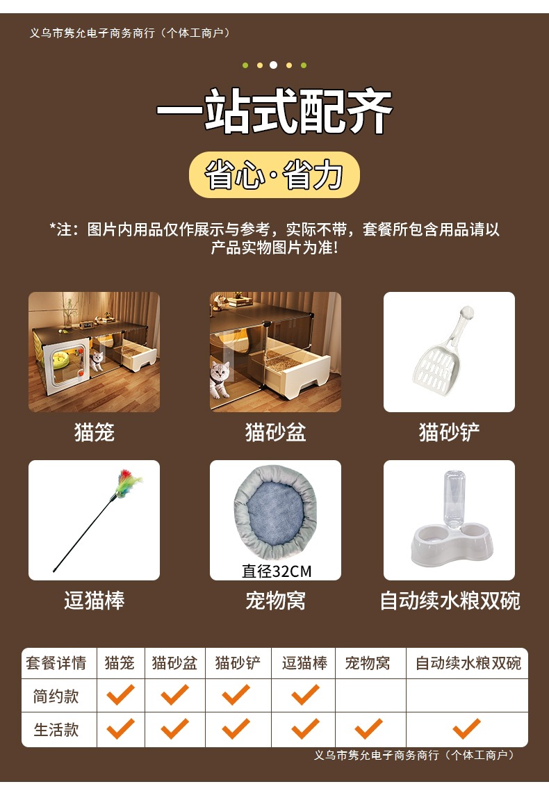 • 간단한 모델: 벌거벗은 케이지 + 고양이 배변 상자 + 고양이 배변 국자 + 고양이 놀리는 막대