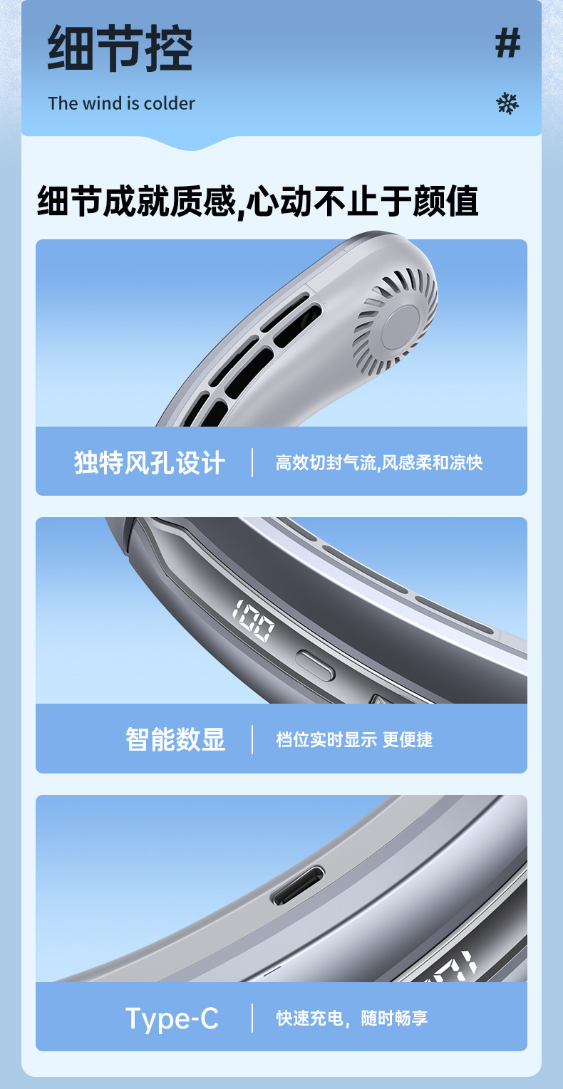 2025 국경 간 새로운 100 기어 디지털 디스플레이 홀터 팬 학생 야외 스포츠 휴대용 usb 미니 홀터스토어 가기