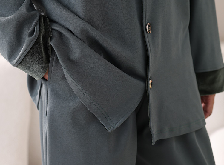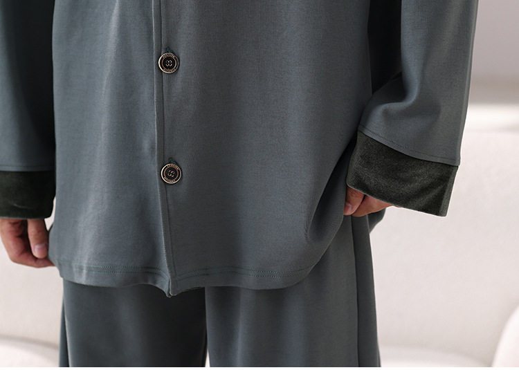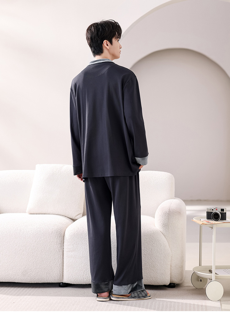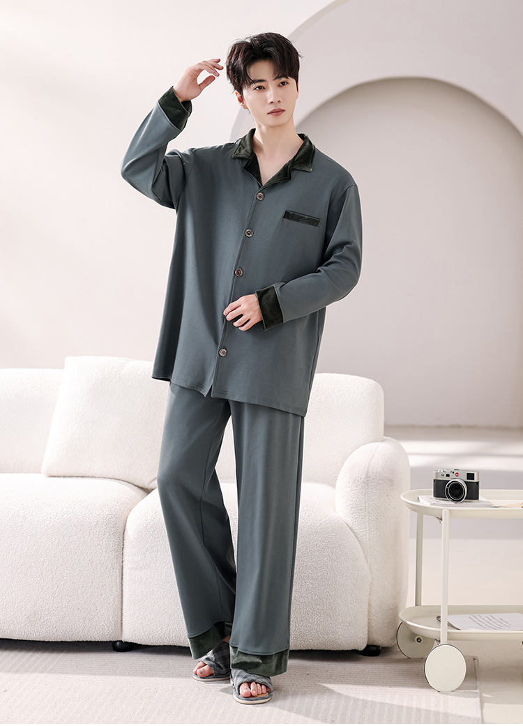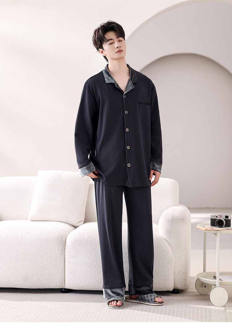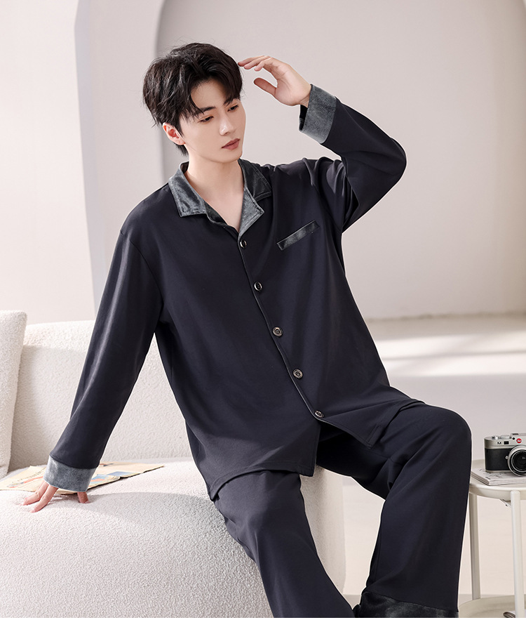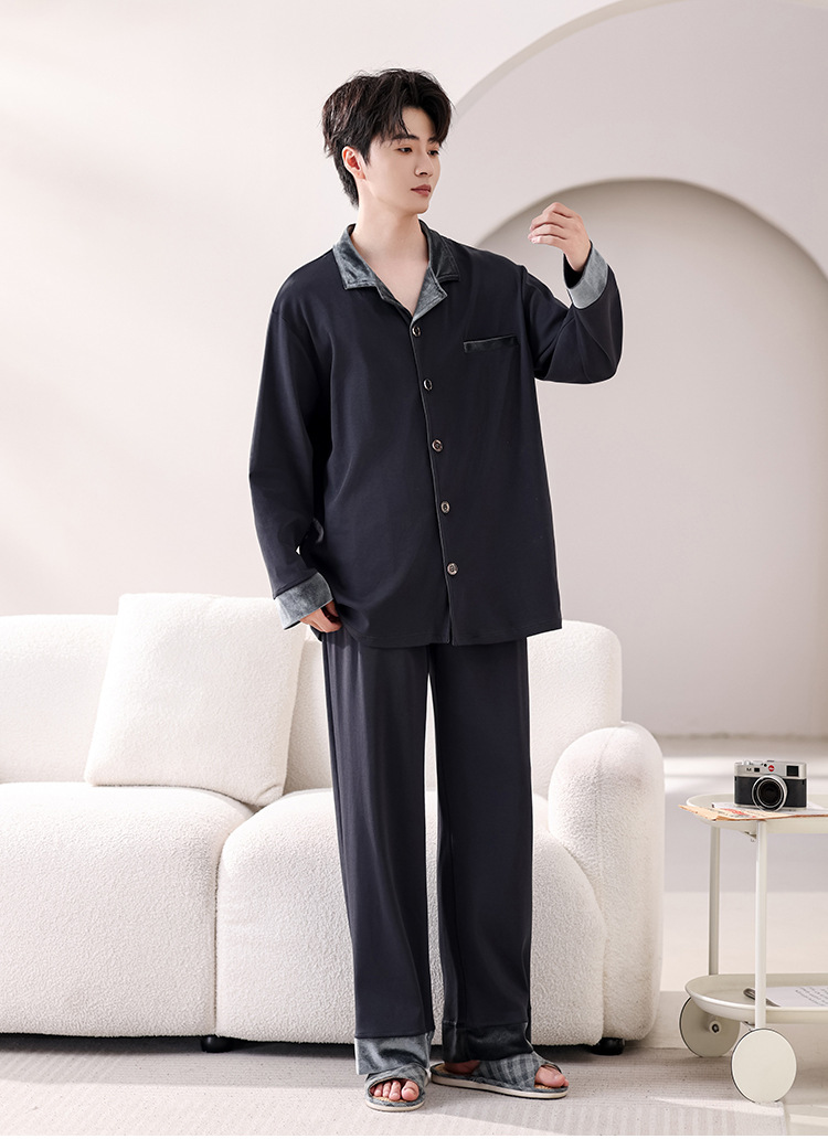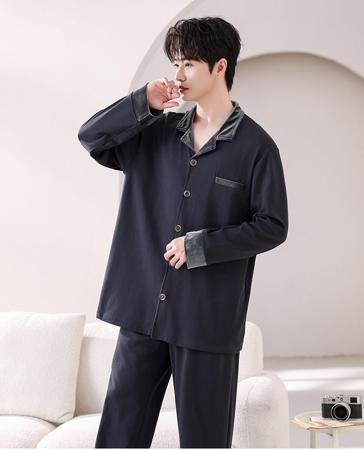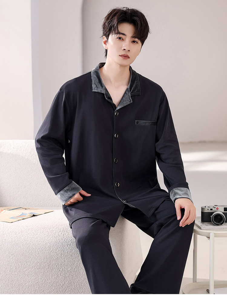 봄과 가을 남성 플러스 사이즈 잠옷 2025 새로운 느슨한 옷깃 홈웨어 솔리드 컬러 긴팔 솔리드 컬러 슈트스토어 가기