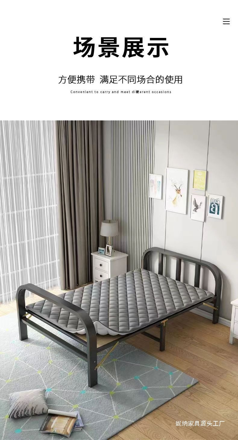 철제 침대 가정용 간이 낮잠 침대 싱글 접이식 침대 사무실 휴대용 침대 낮잠 임대실 단단한 나무 다기능