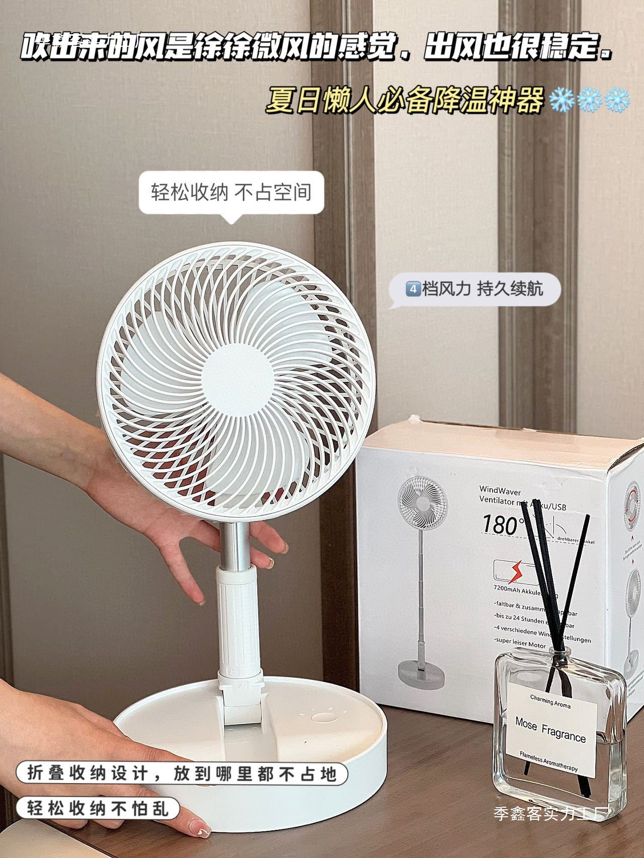 .접이식 팬 충전식 팬 사무실 데스크탑 팬 텔레스코픽 스토리지 휴대용 바람스토어 가기