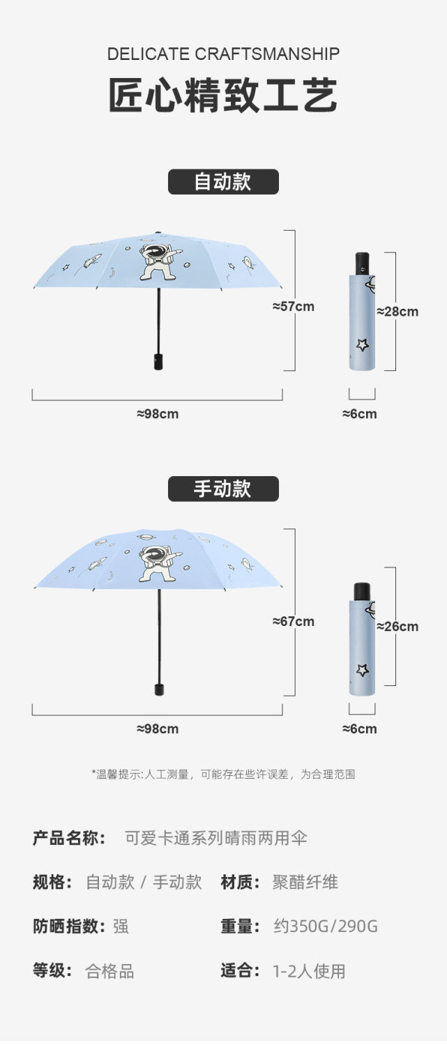 남성과 여성의 만화 파라솔 대형 우산 여성용 비 또는 빛 태양 보호 학생 접이식 파라솔 자동 비닐