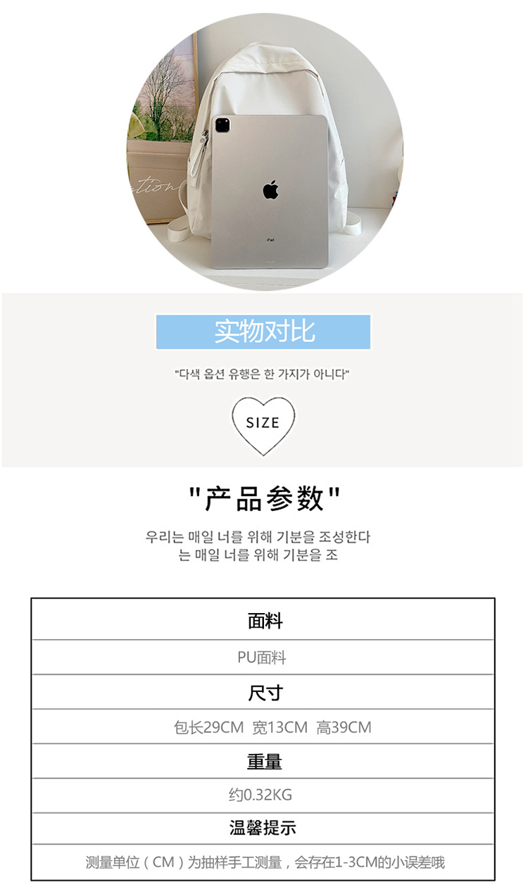 중학생을위한 새로운 한국어 스타일 ins 대학 스타일 학교 가방 캐주얼 단순 경량 통근 대용량 배낭