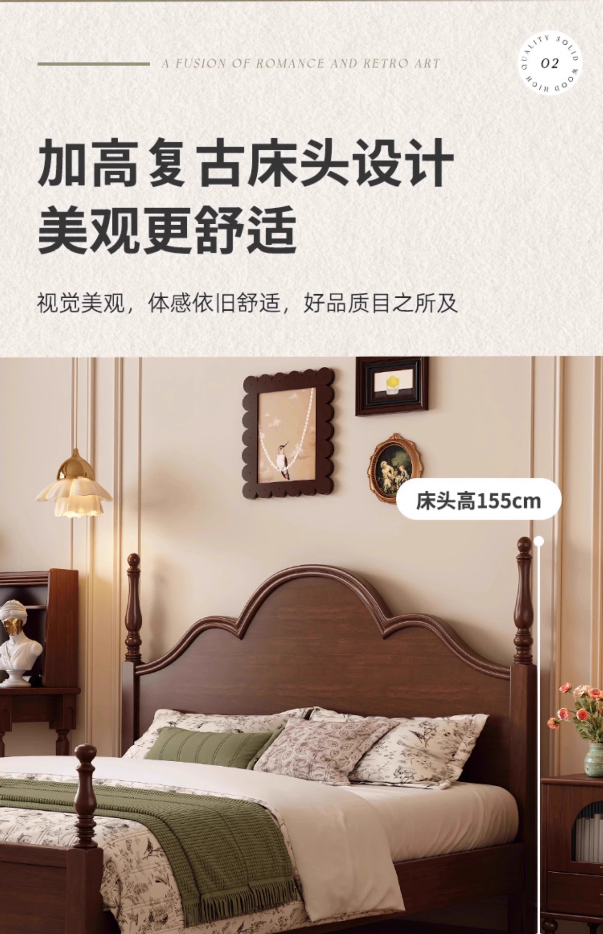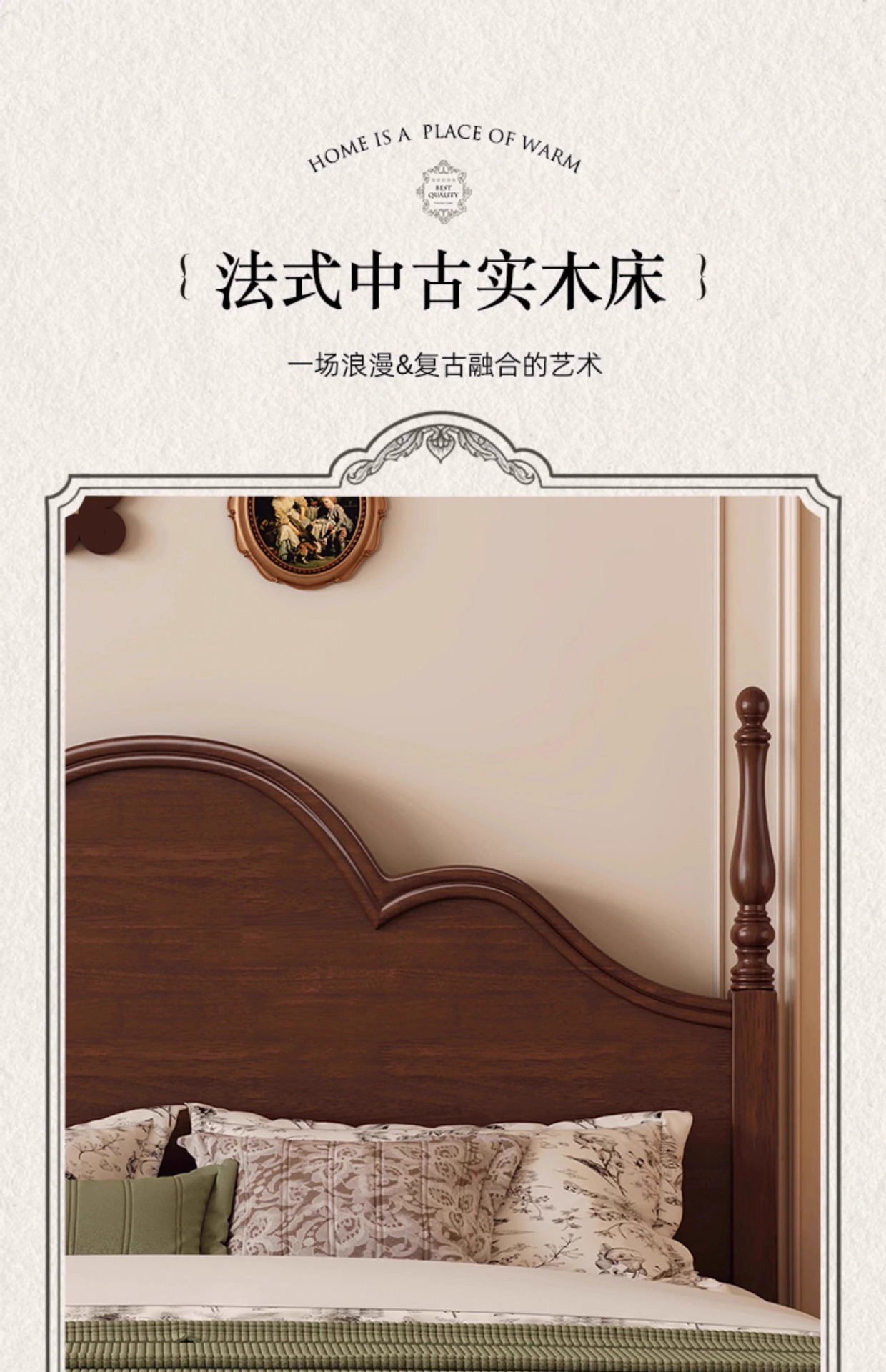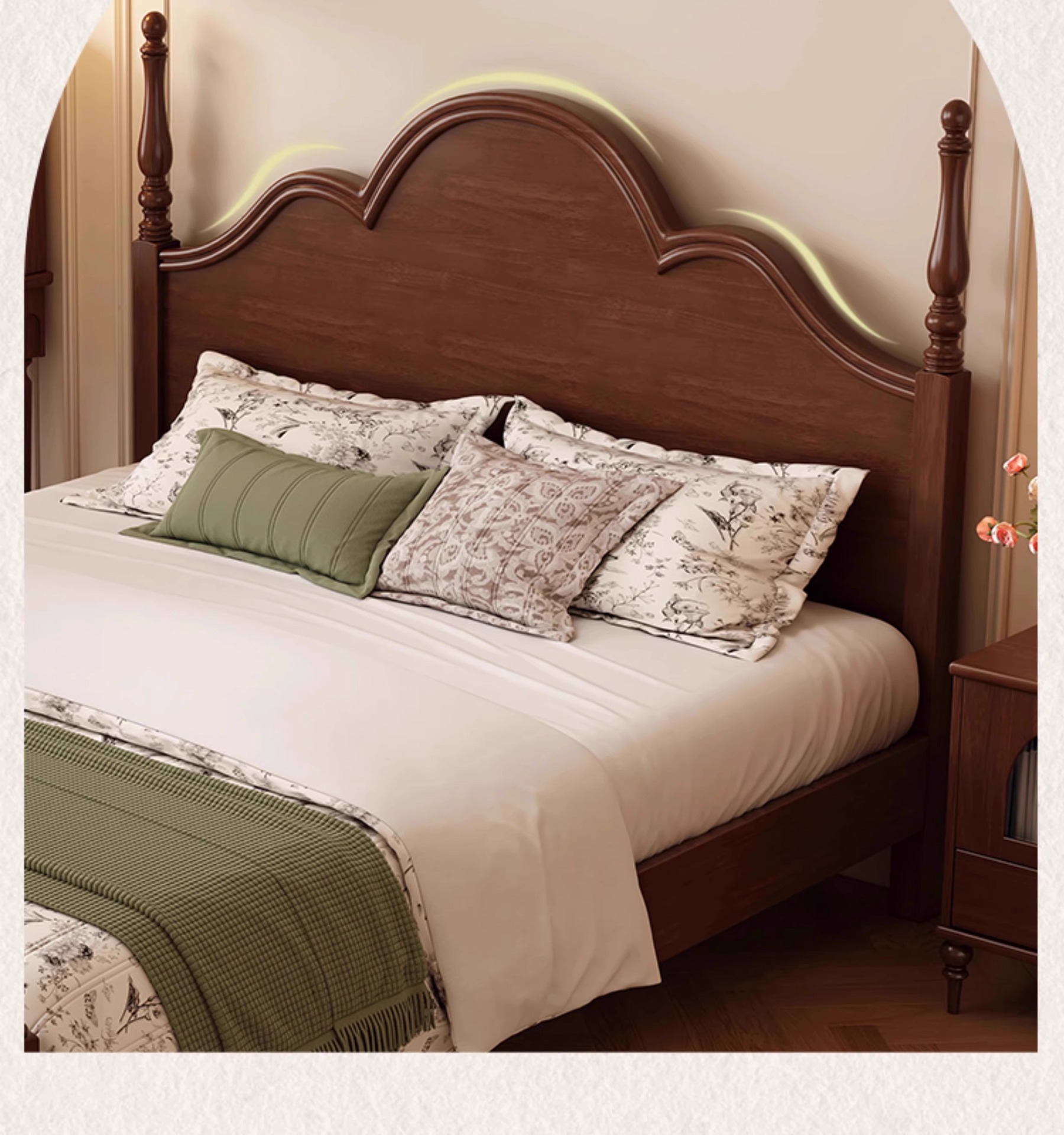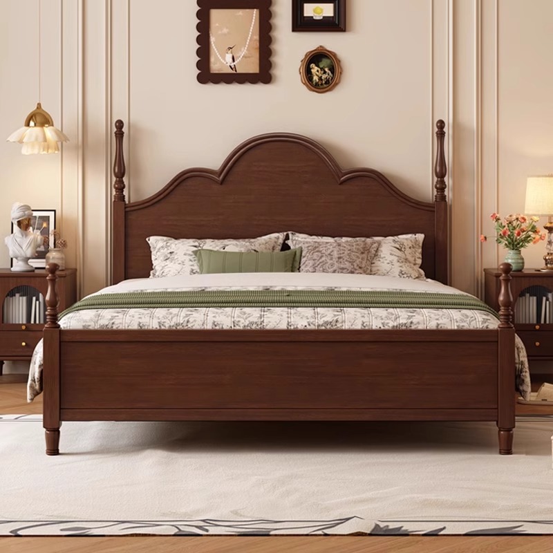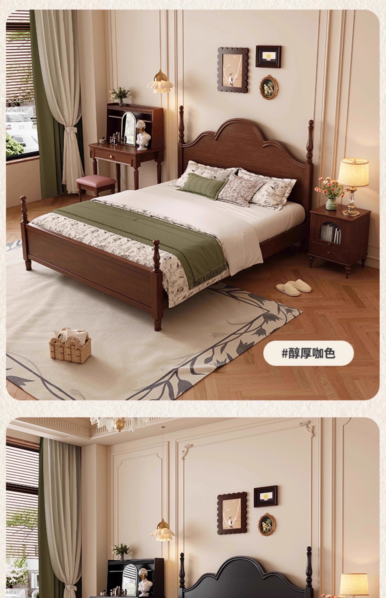 프렌치 레트로 원목 침대 1.5m 미드 센츄리 스타일 B&B 침대 안나 침대 다크 호두 색상 1.8m 마스터 침실 더블 침대