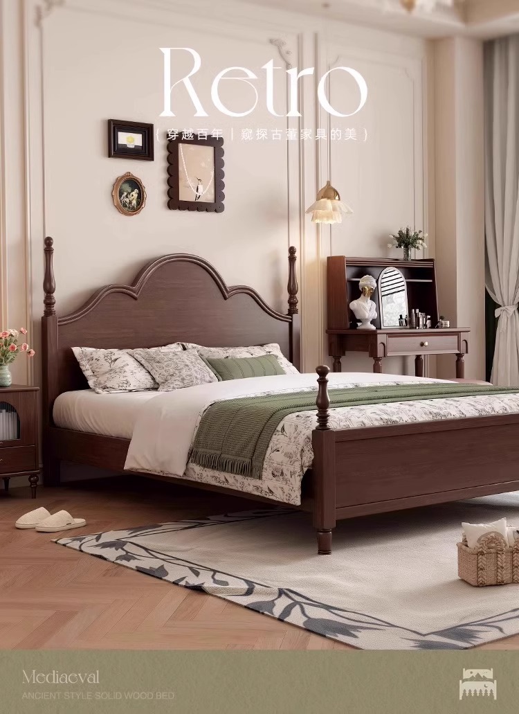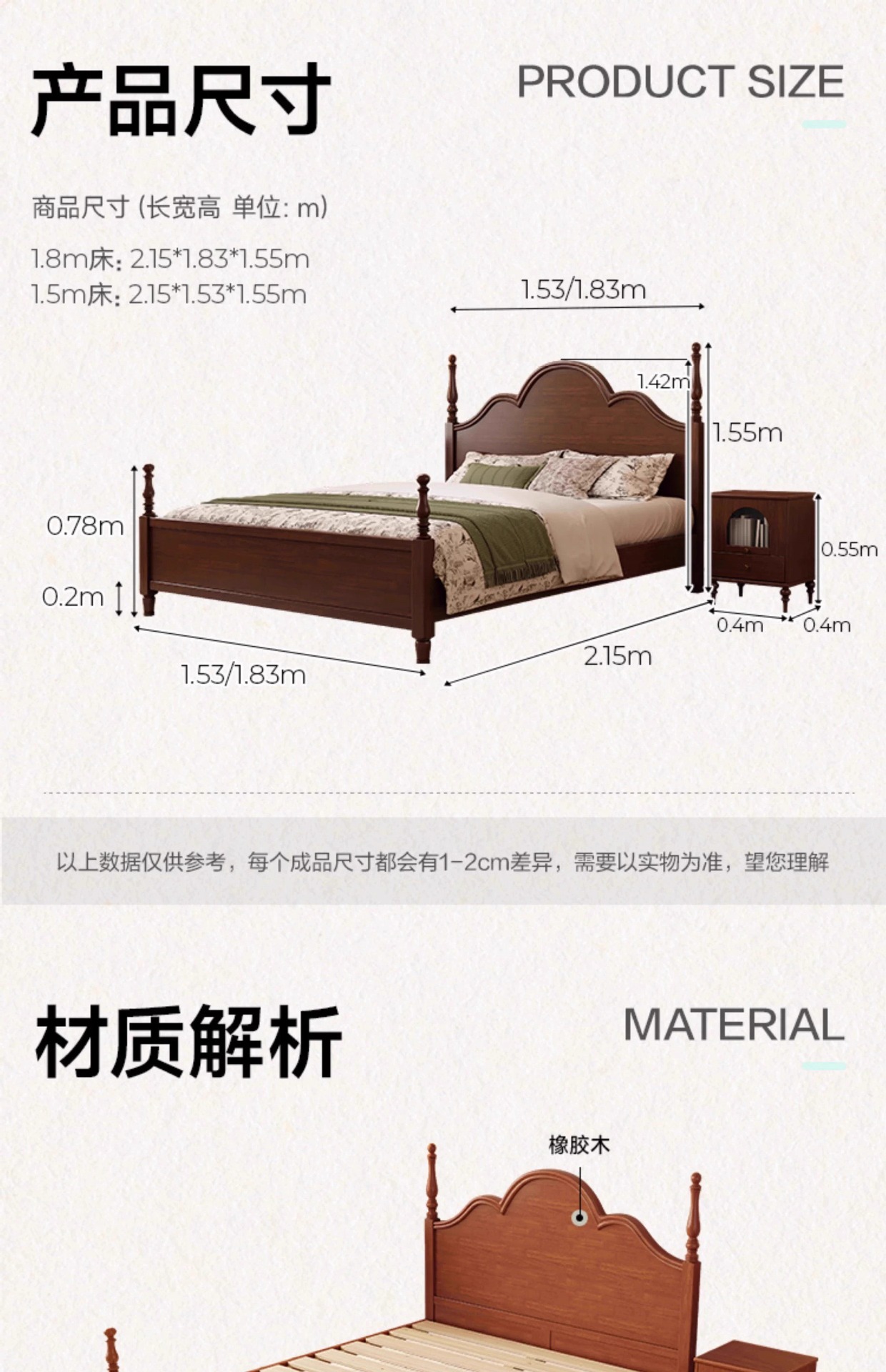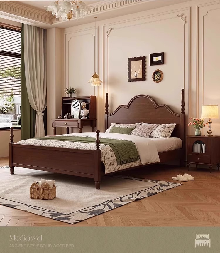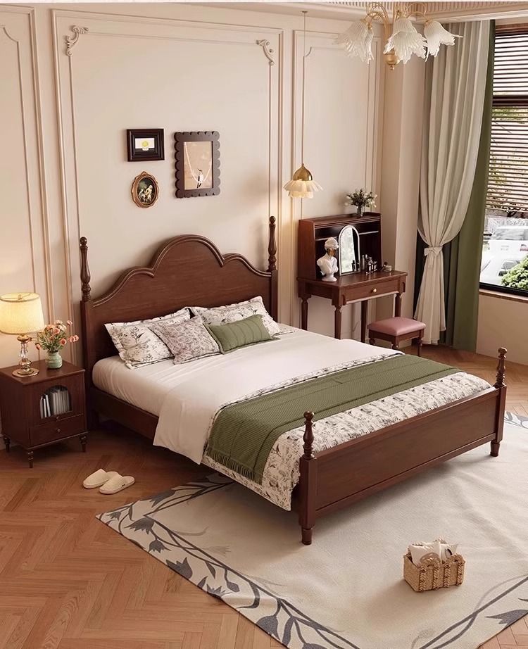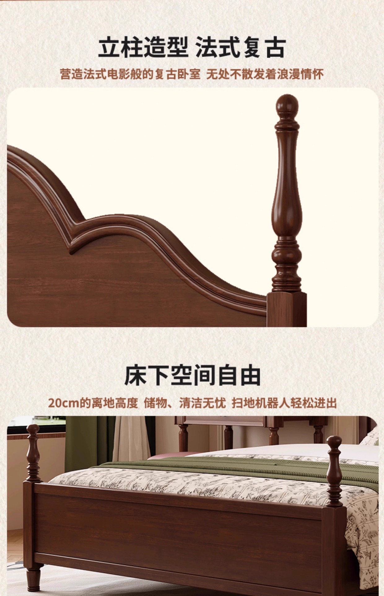 프렌치 레트로 원목 침대 1.5m 미드 센츄리 스타일 B&B 침대 안나 침대 다크 호두 색상 1.8m 마스터 침실 더블 침대