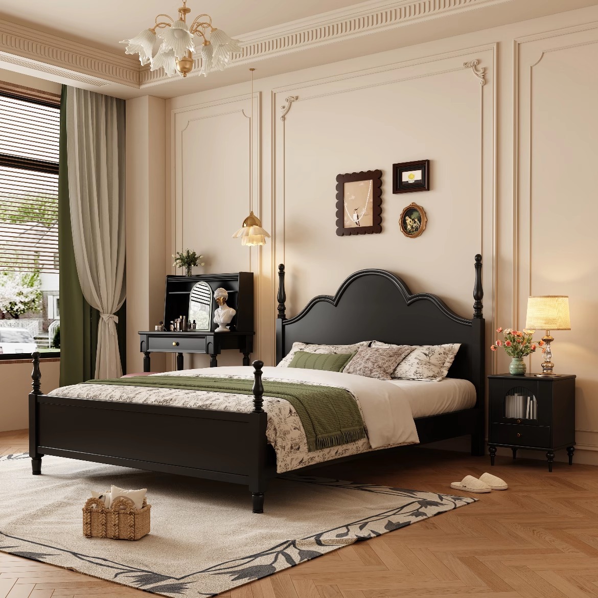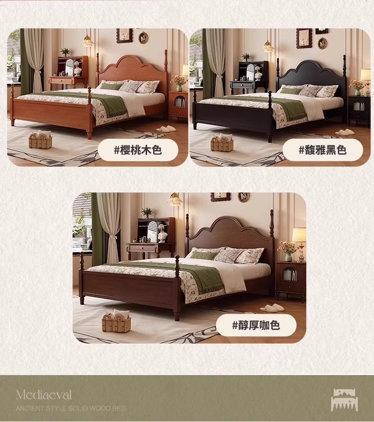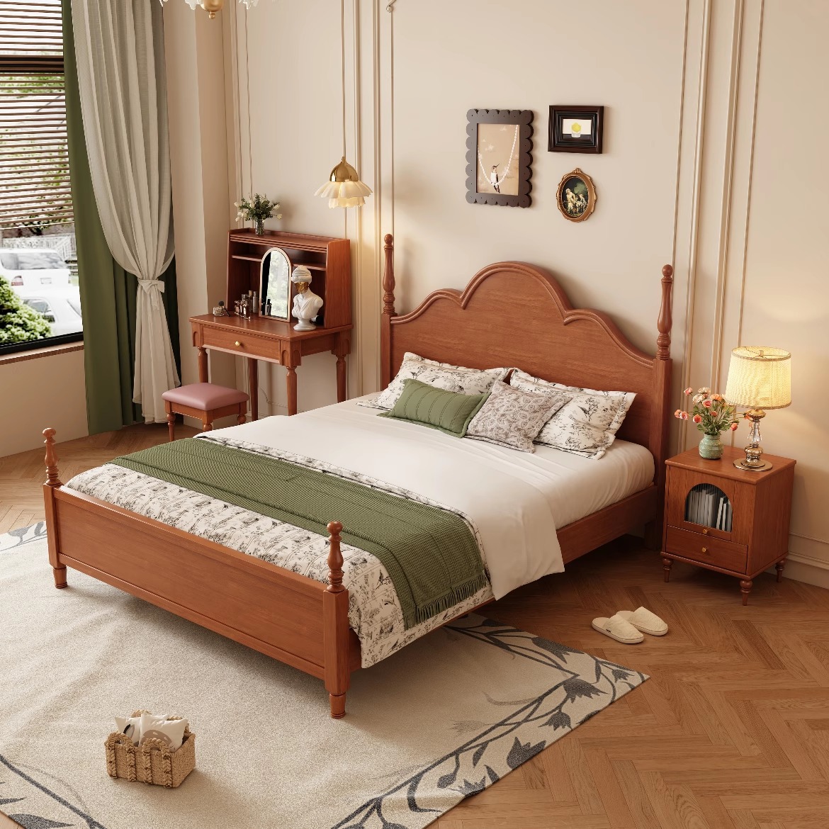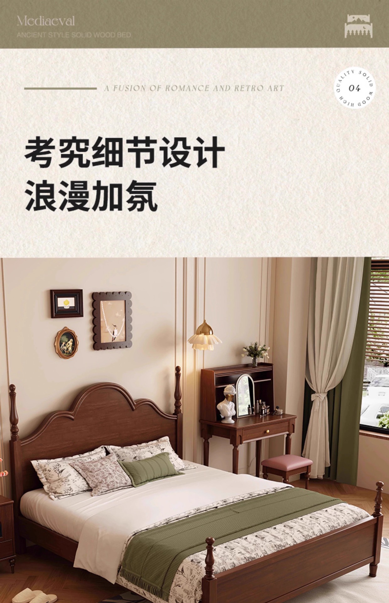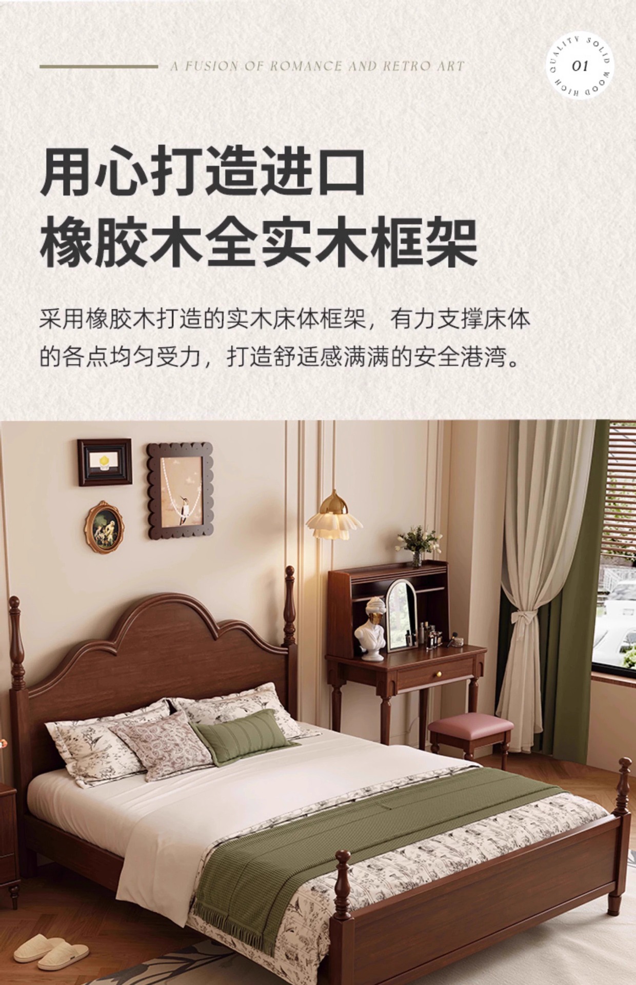 프렌치 레트로 원목 침대 1.5m 미드 센츄리 스타일 B&B 침대 안나 침대 다크 호두 색상 1.8m 마스터 침실 더블 침대