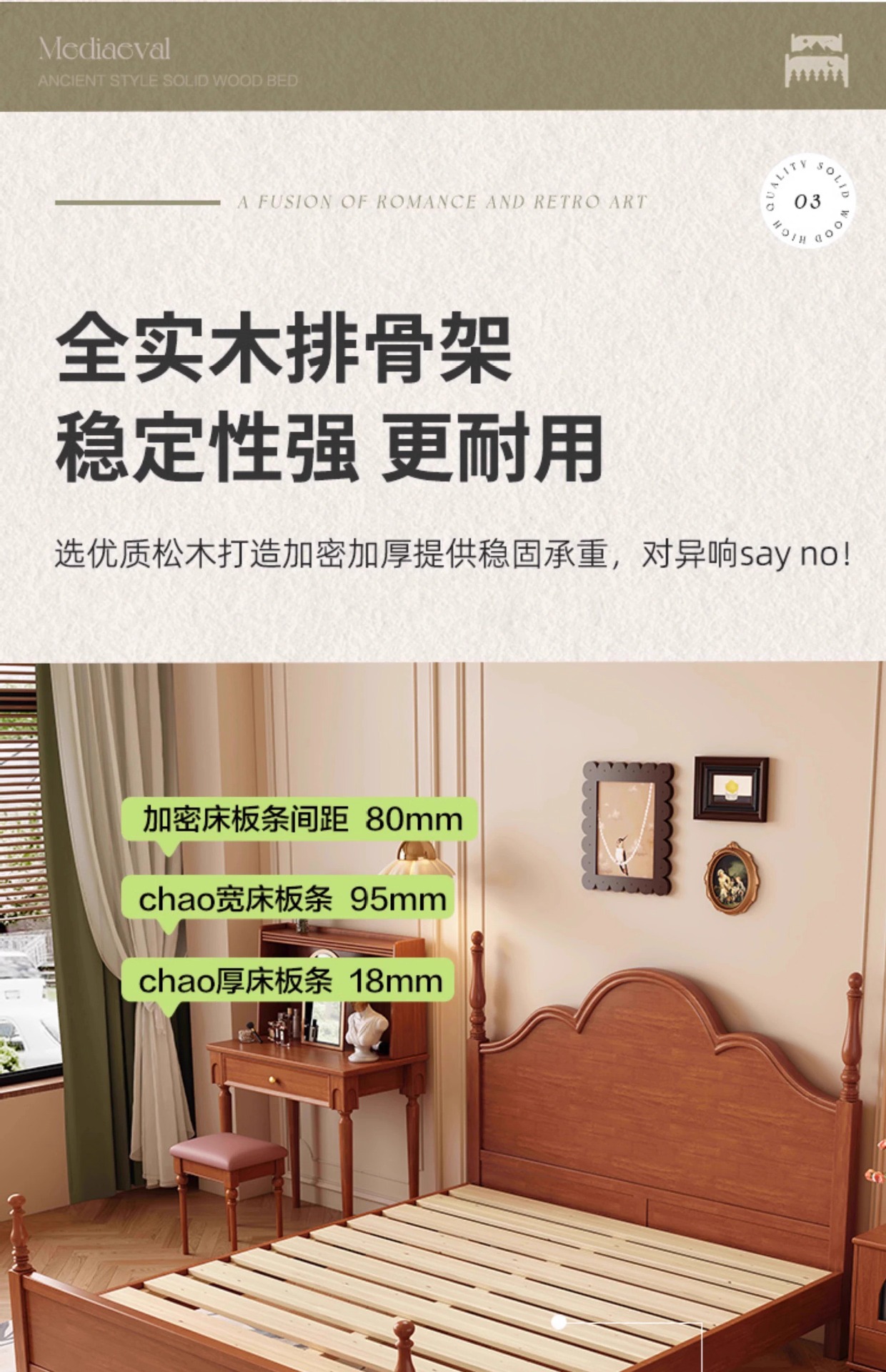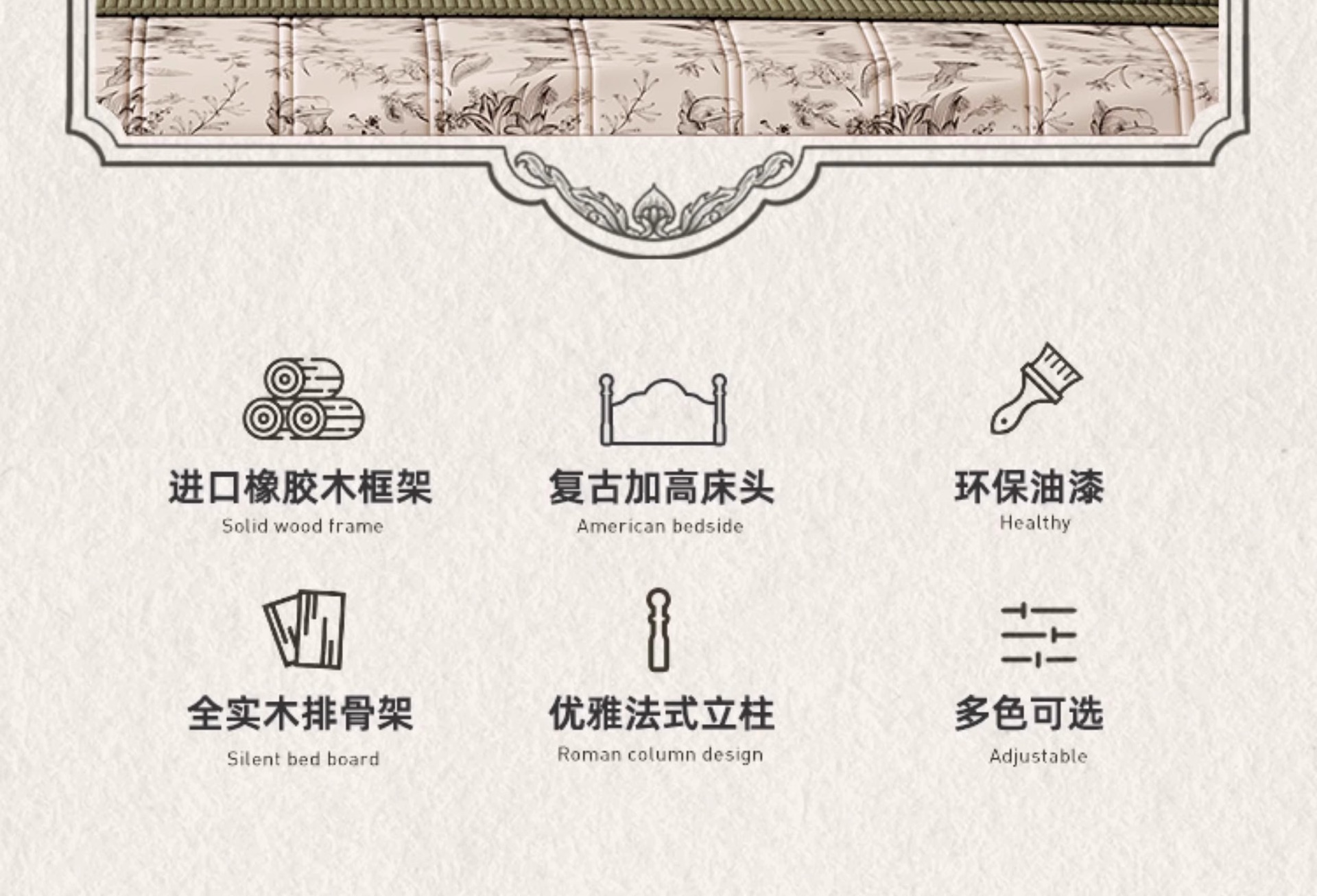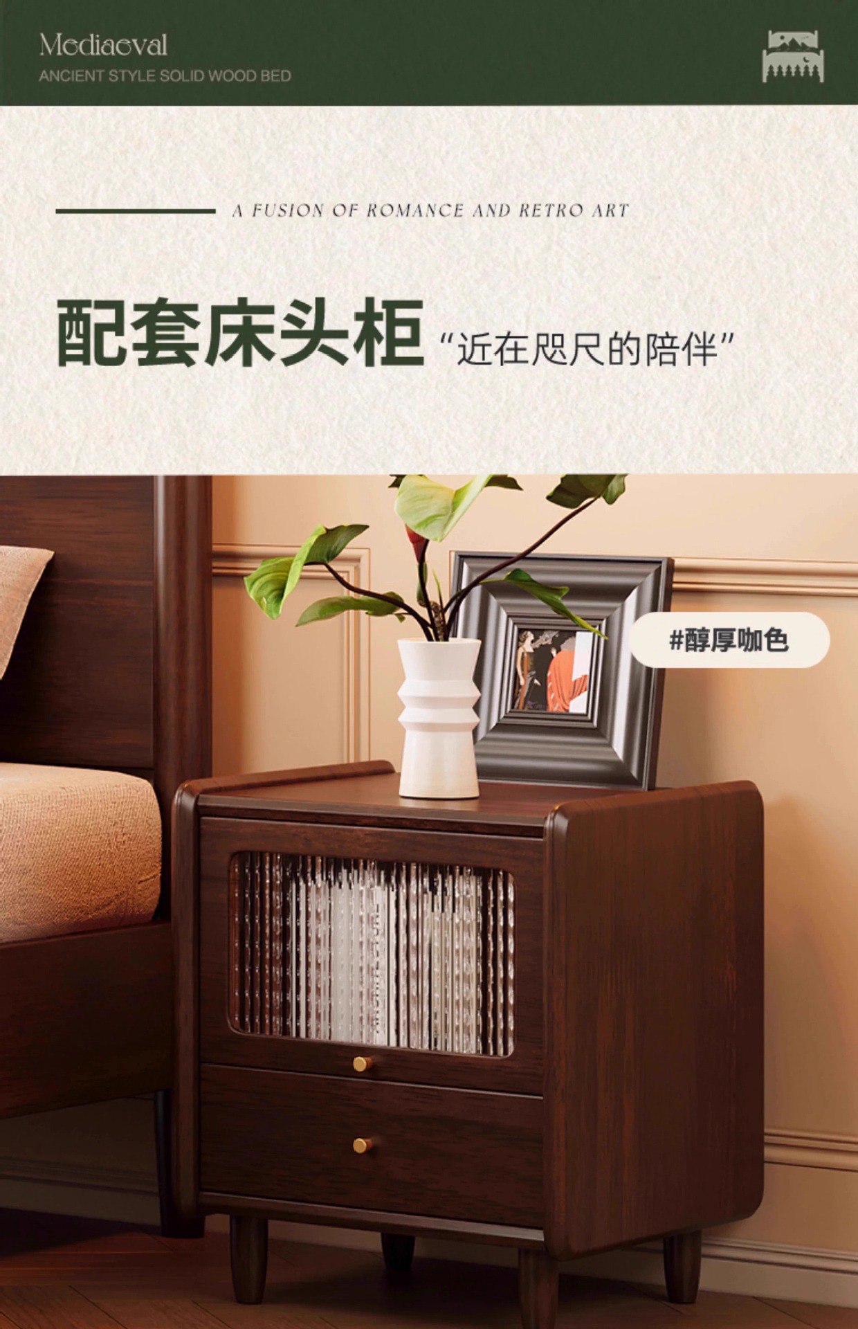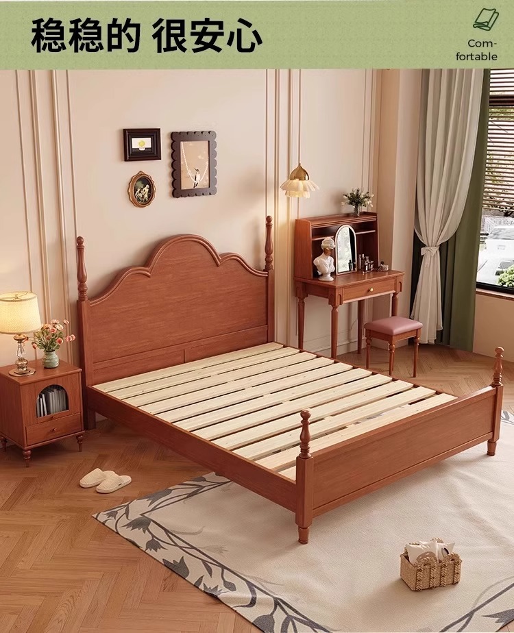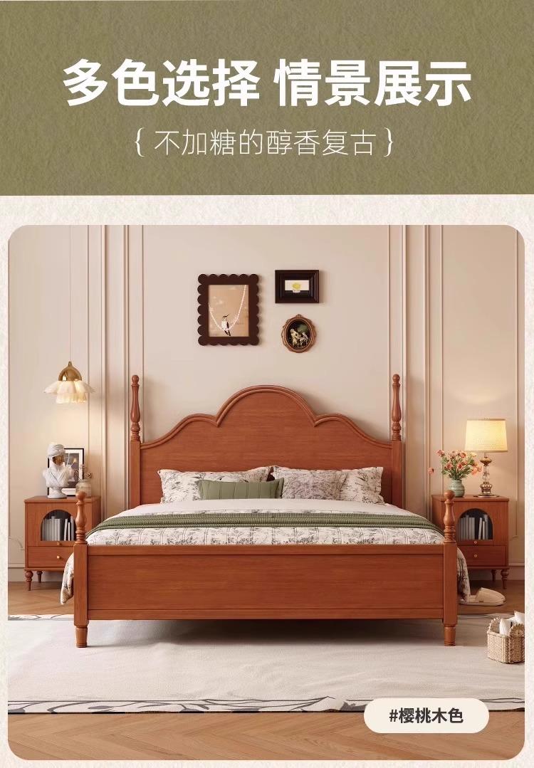 프렌치 레트로 원목 침대 1.5m 미드 센츄리 스타일 B&B 침대 안나 침대 다크 호두 색상 1.8m 마스터 침실 더블 침대