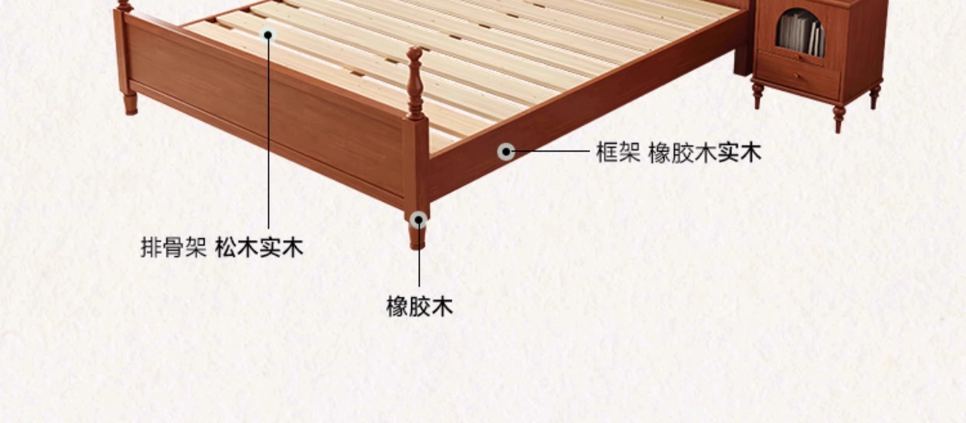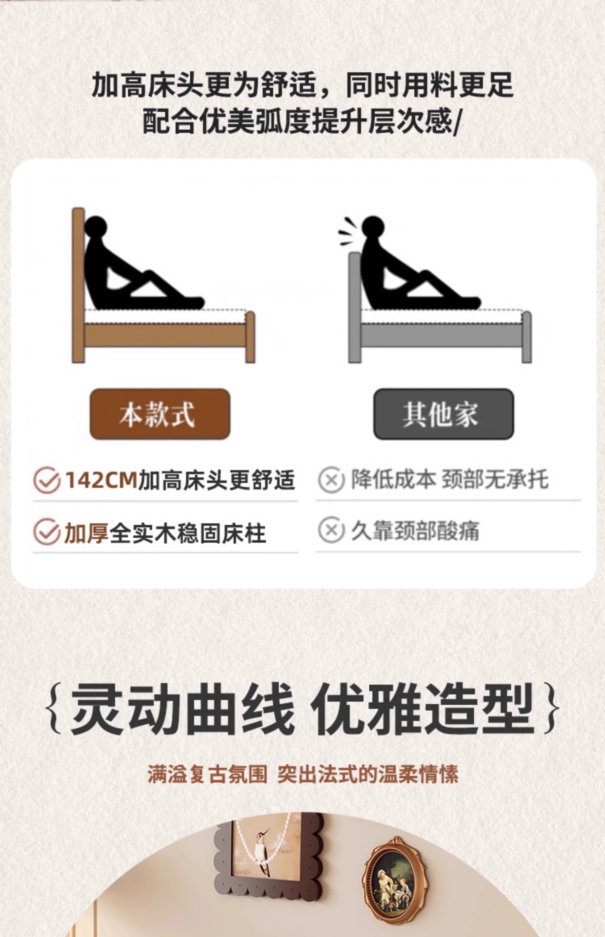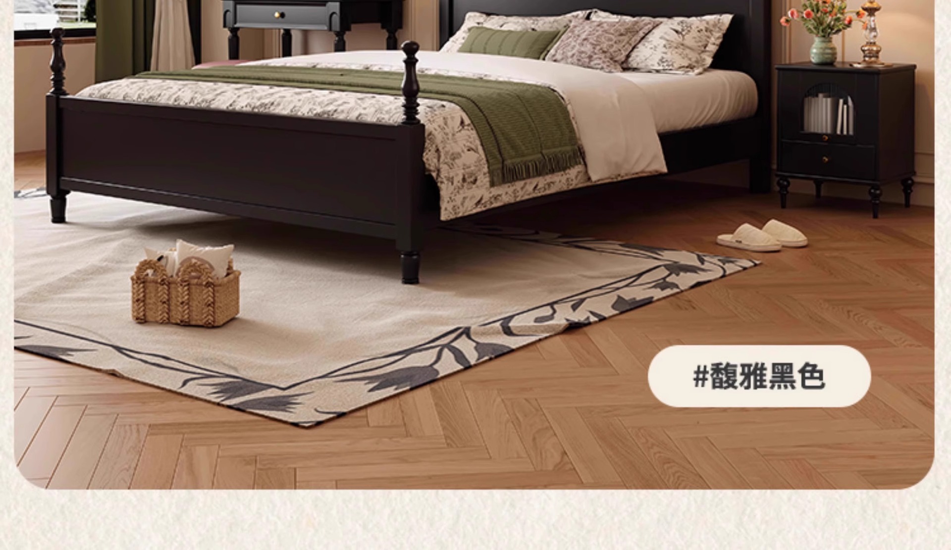프렌치 레트로 원목 침대 1.5m 미드 센츄리 스타일 B&B 침대 안나 침대 다크 호두 색상 1.8m 마스터 침실 더블 침대스토어 가기