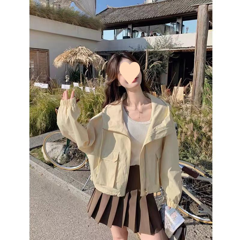 작업복 재킷 짧은 재킷 여성 봄, 가을 2025 후드 솔리드 컬러 드로스트링 루즈 스몰 재킷 탑스토어 가기