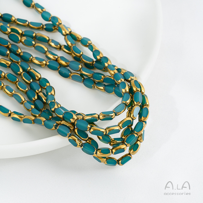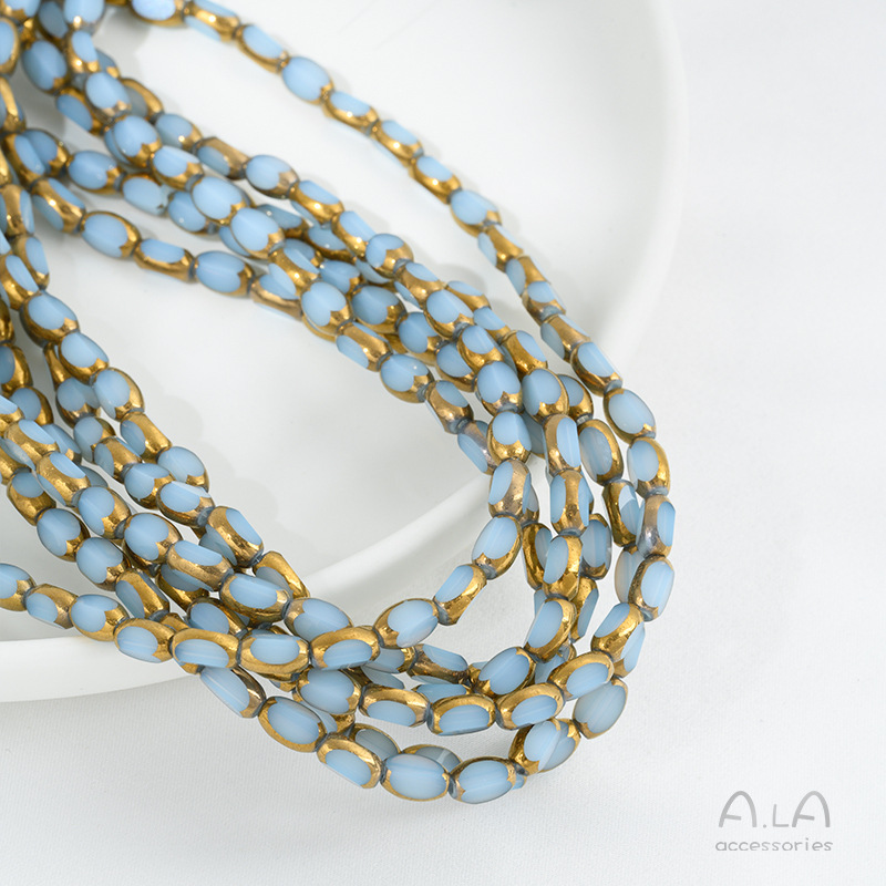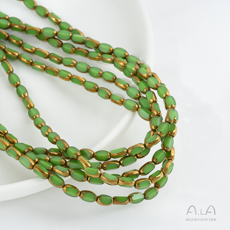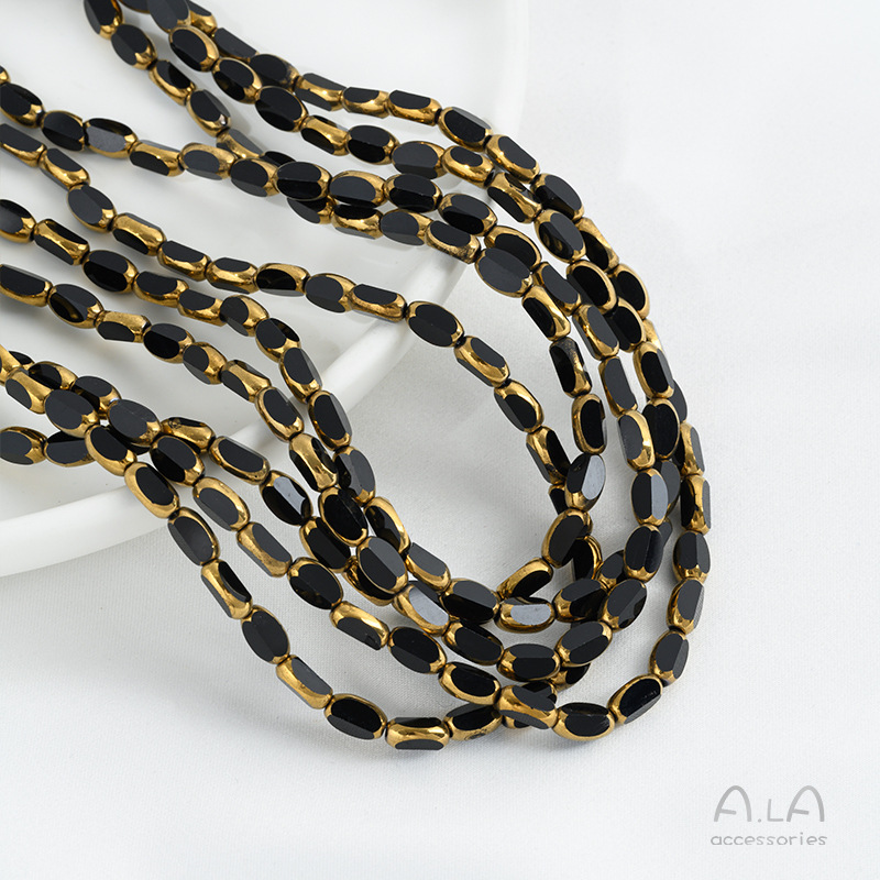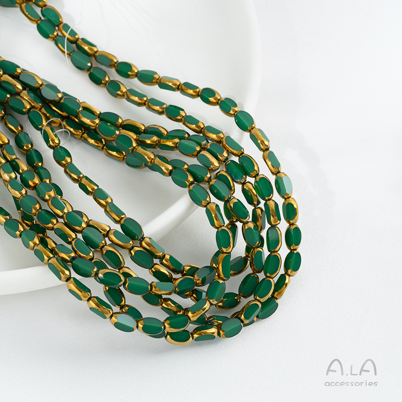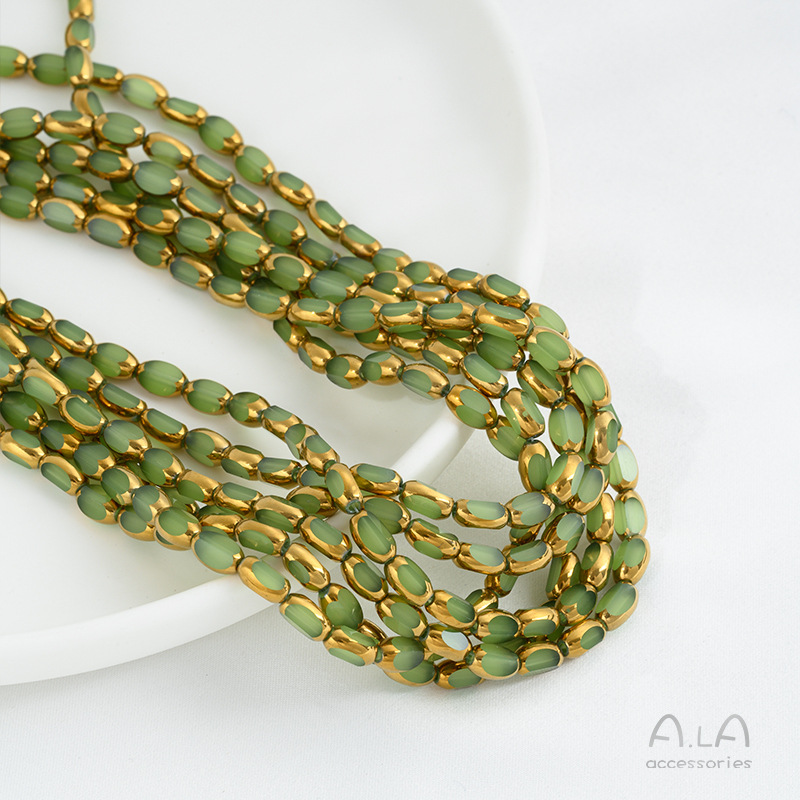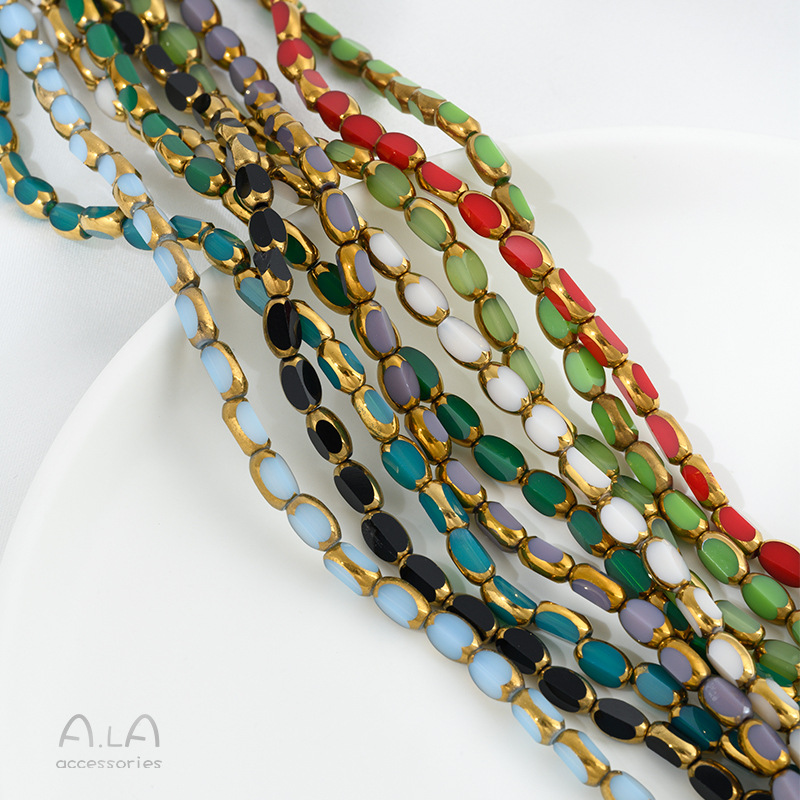 솔리드 컬러 크리스탈 유리 컷 타원형 골드 에지 쌀 비즈 DIY 수제 보석 재료 수제 루즈 비즈 액세서리스토어 가기