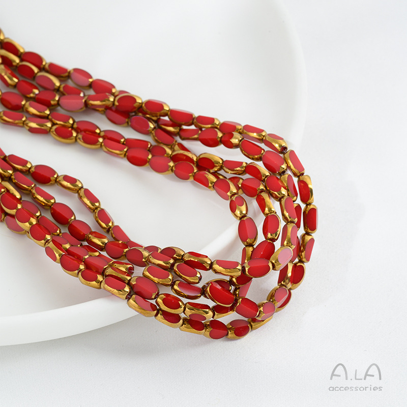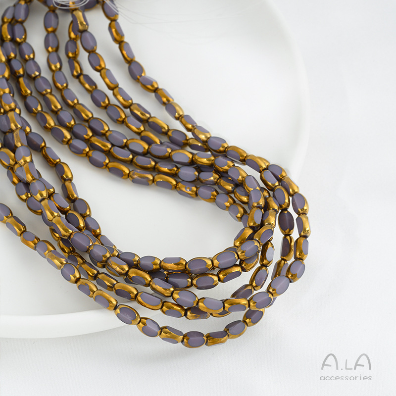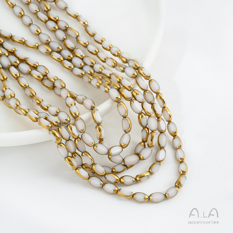솔리드 컬러 크리스탈 유리 컷 타원형 골드 에지 쌀 비즈 DIY 수제 보석 재료 수제 루즈 비즈 액세서리