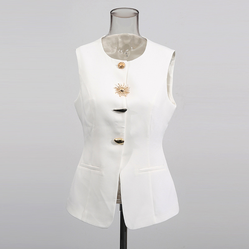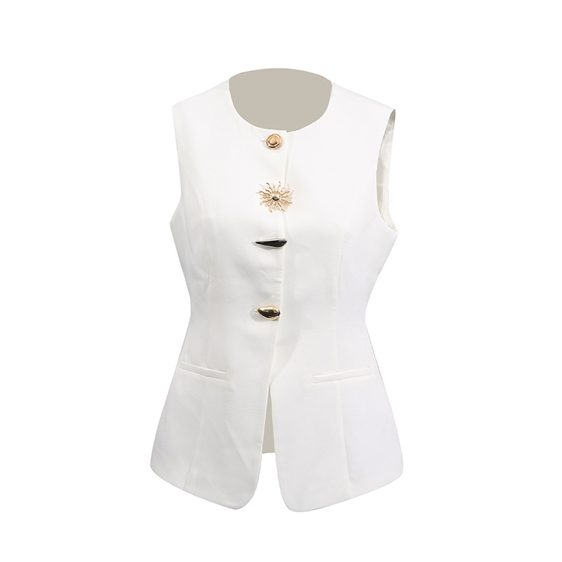 니치 디자인 불규칙 조끼 2025 새로운 패션 라운드 넥 버튼 장식 슬림 슬리밍 조끼 여성 트렌드스토어 가기
