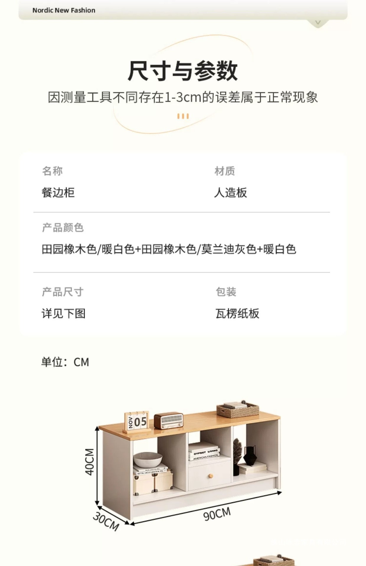 • [심플모델] 웜화이트 + 전원참나무색상 90*30*40