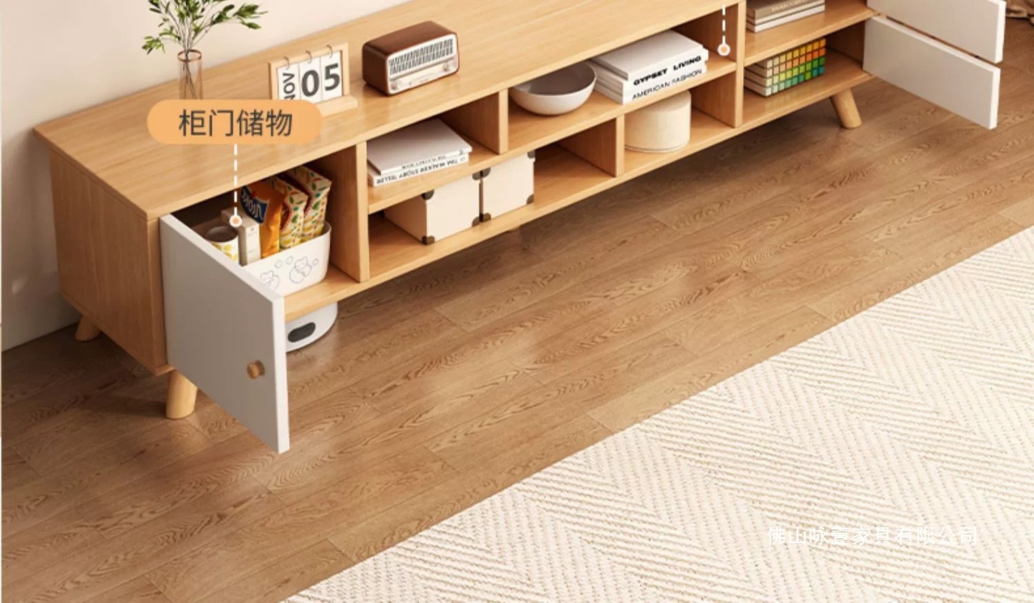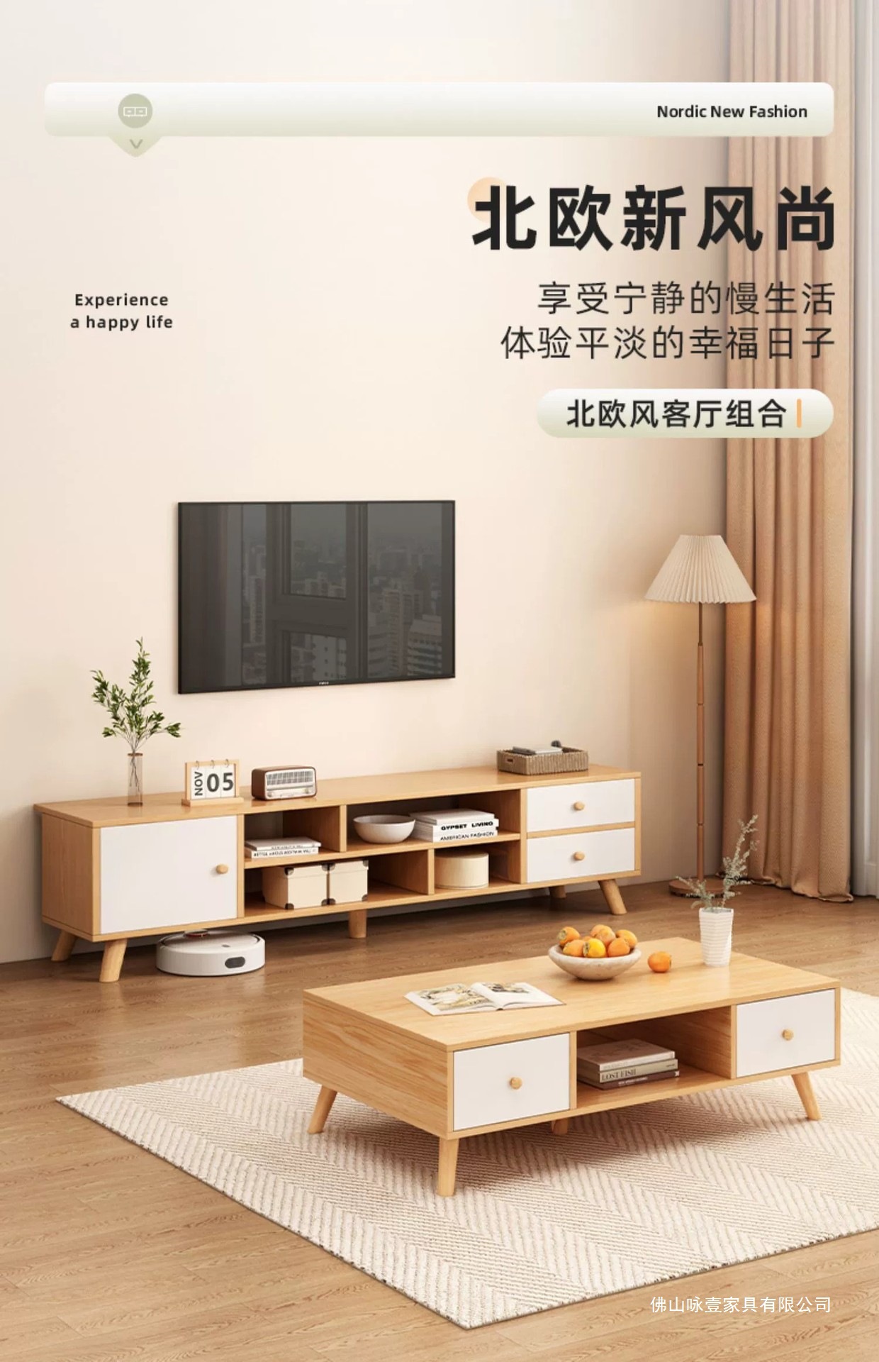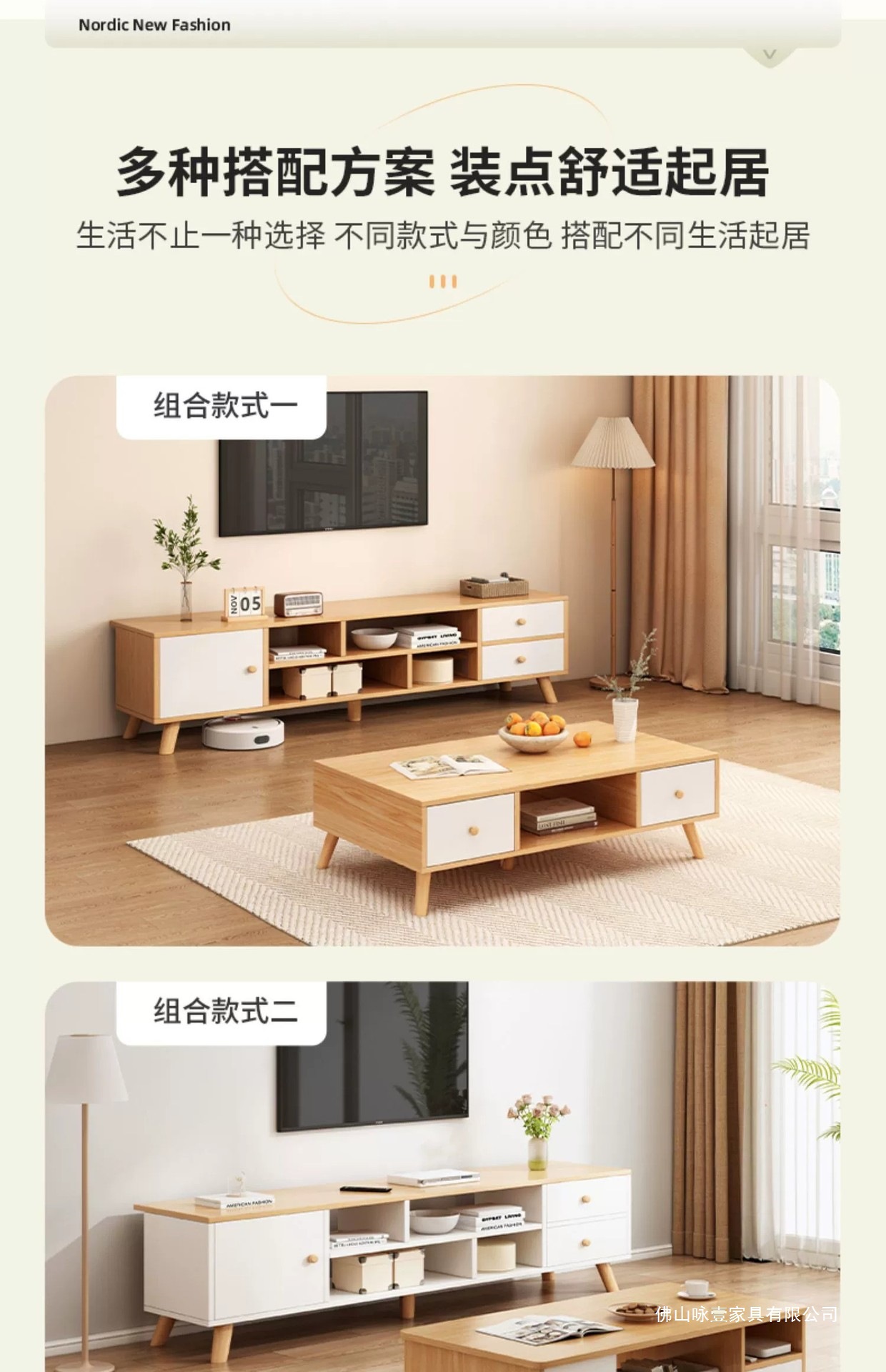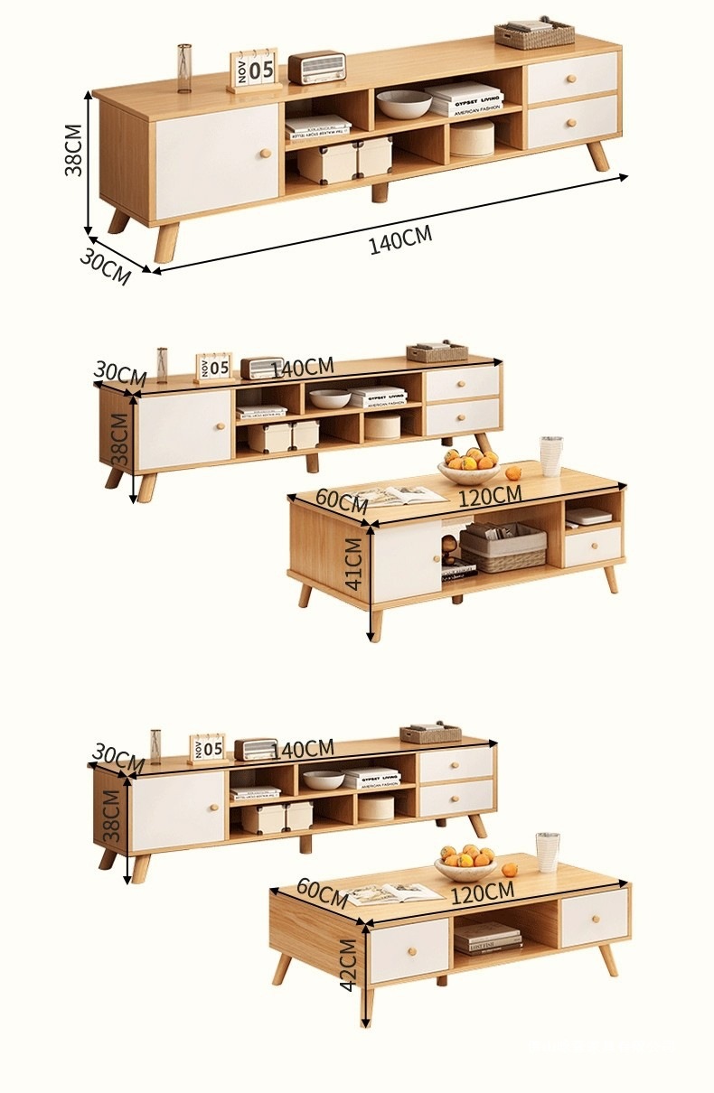 电视柜茶几现代简约落地客厅家具原木风小户型电视机柜卧室储物柜
