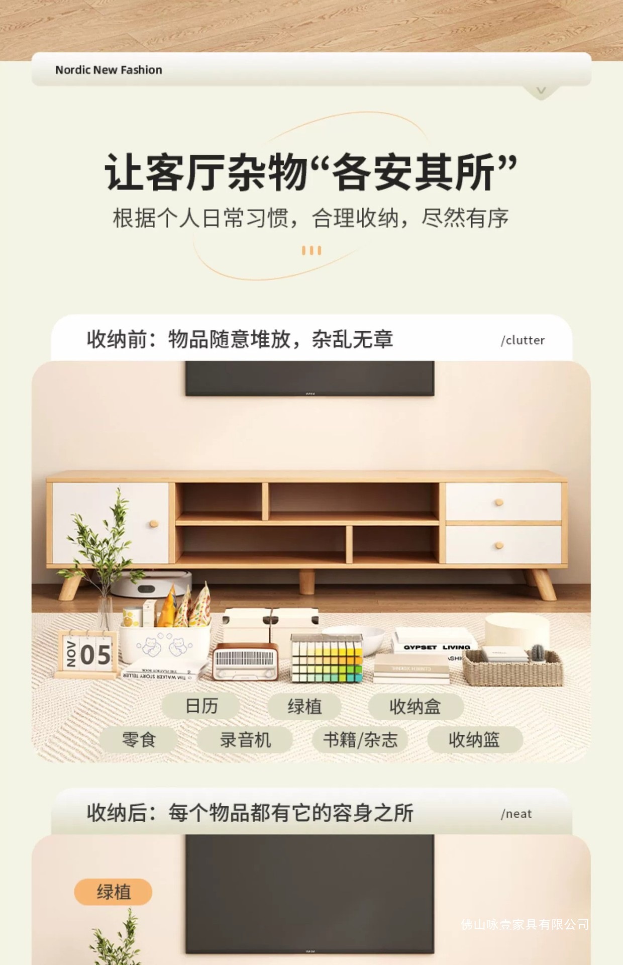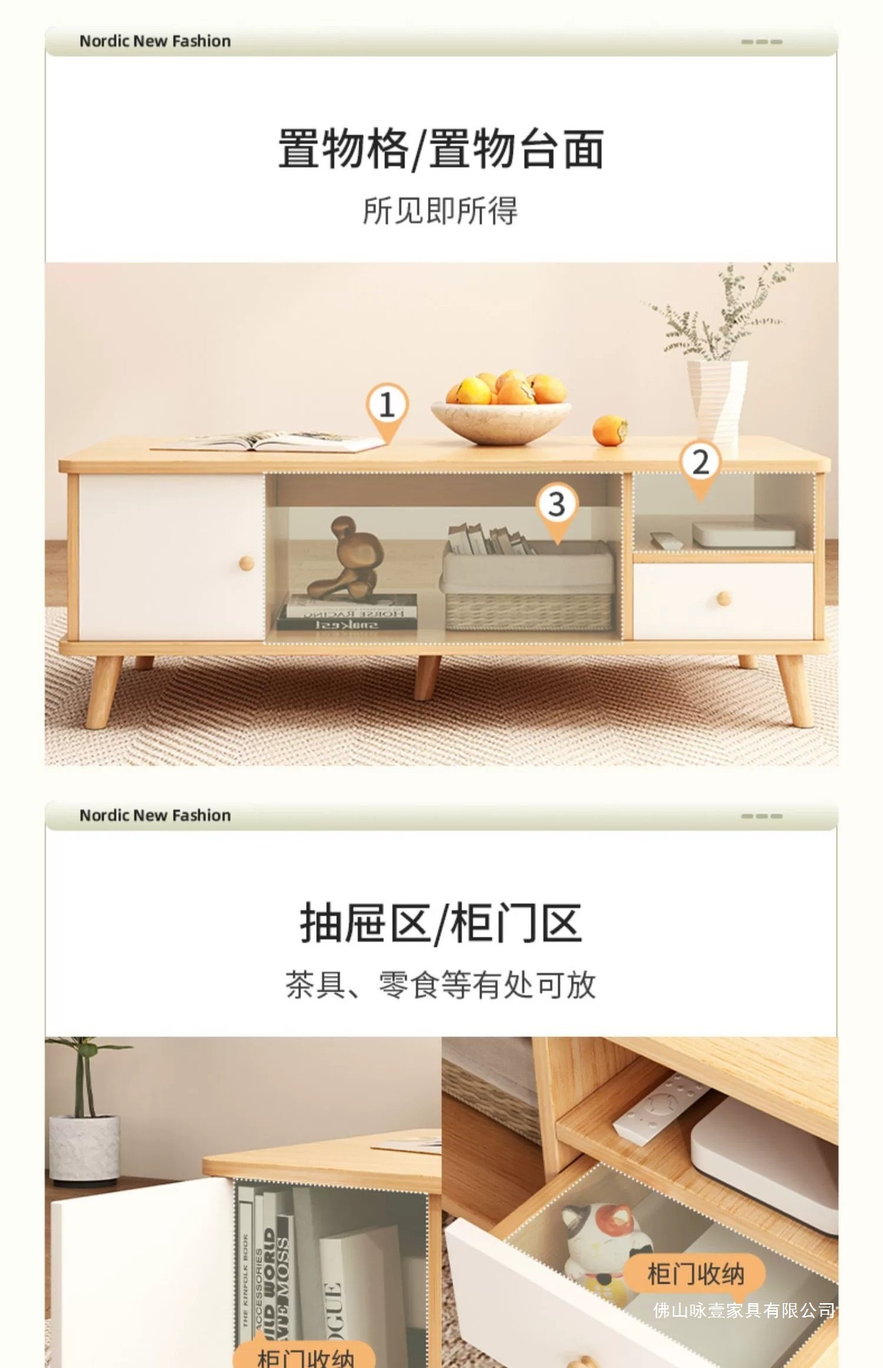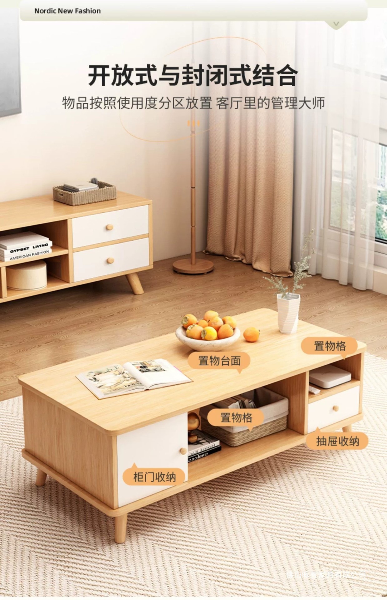 电视柜茶几现代简约落地客厅家具原木风小户型电视机柜卧室储物柜