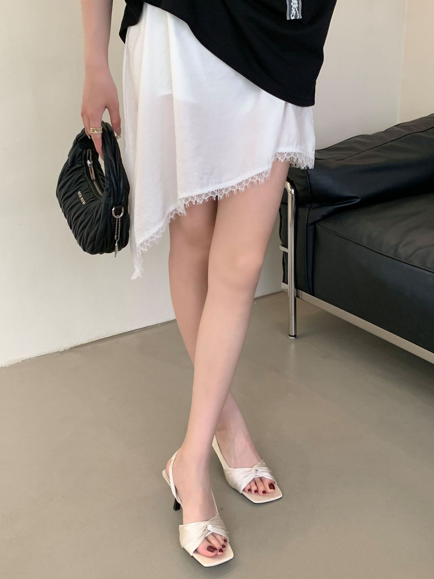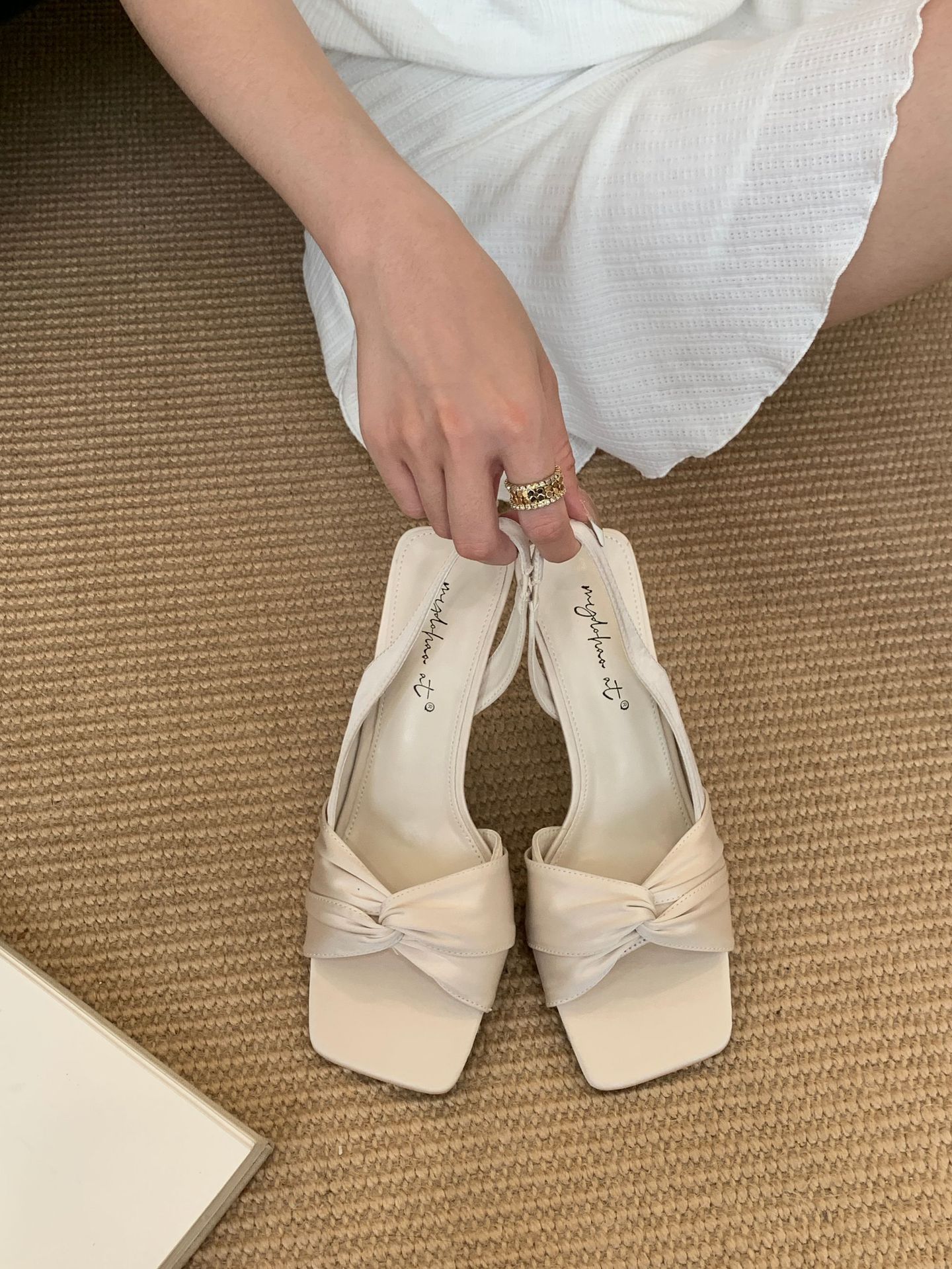 2025년 여름 여성을 위한 프렌치 하이엔드 샌들 새로운 스타일의 스퀘어 토 오픈 토 스틸레토 힐 스트랩 스타일 샌들