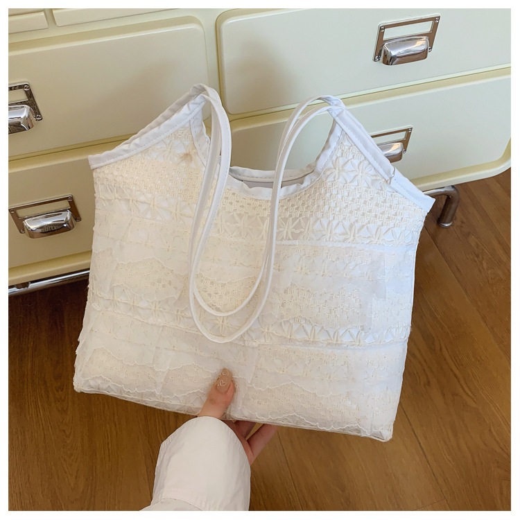 여름 캐주얼 휴가 요정 레이스 스카프 2025 외국 스타일 대용량 중공 해변 맞춤형 토트 숄더 백 여성용스토어 가기