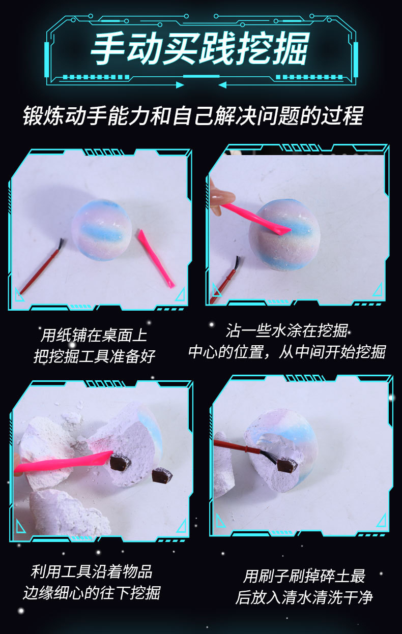 어린이 고고학 발굴 장난감 태양계의 여덟 행성 보석 발굴 소년과 소녀 수제 보물 찾기 블라인드 박스 보물 찾기