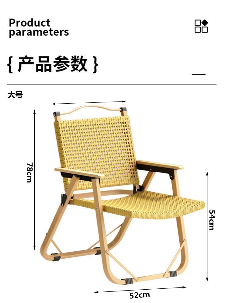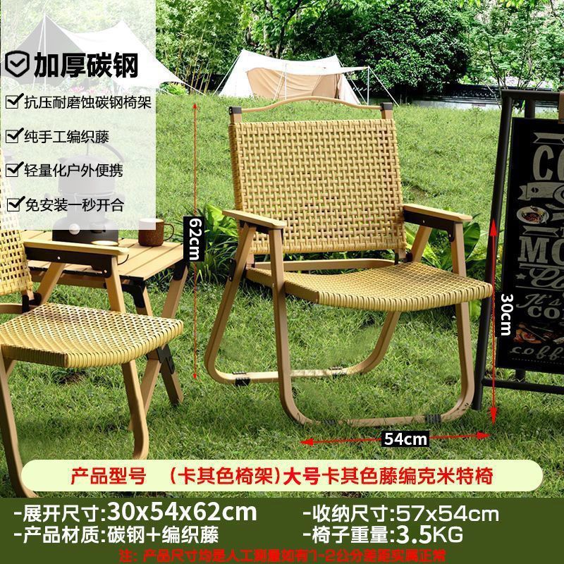 • [재고 있음, 빠른 배송] 수제 휴대용 접이식 등나무 의자 대형 카키색