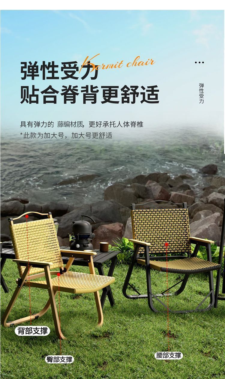 • [재고 있음, 빠른 배송] 대형 더블 컬러 매칭의 수제 휴대용 접이식 등나무 의자