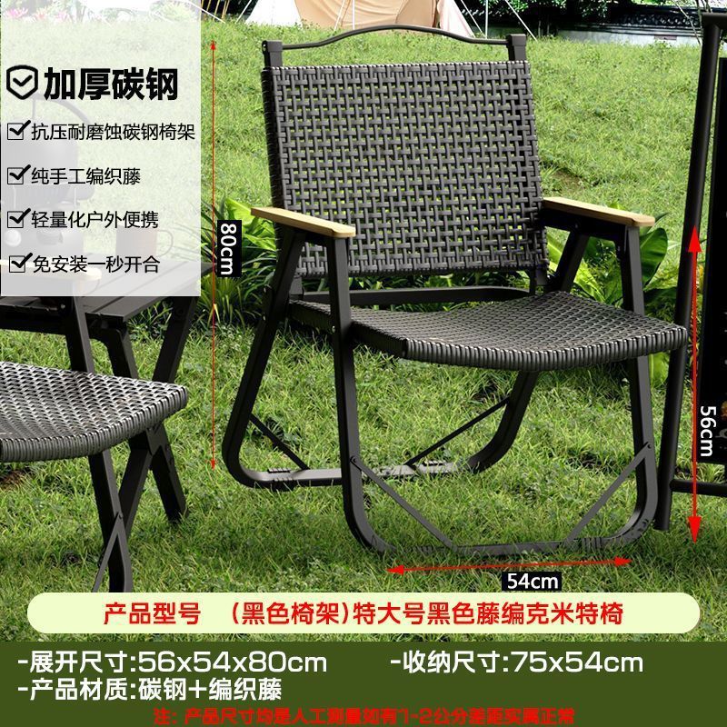 • [재고 있음, 빠른 배송] 수제 휴대용 접이식 등나무 의자 대형 쿨 블랙
