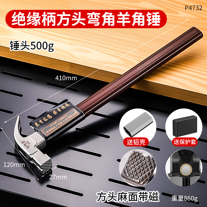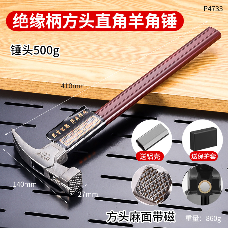 다기능 목공 특수 일체형 절연 손잡이 코너 해머 고경도 크롬 바나듐 강철 사각형 헤드 라운드 헤드 코너 해머