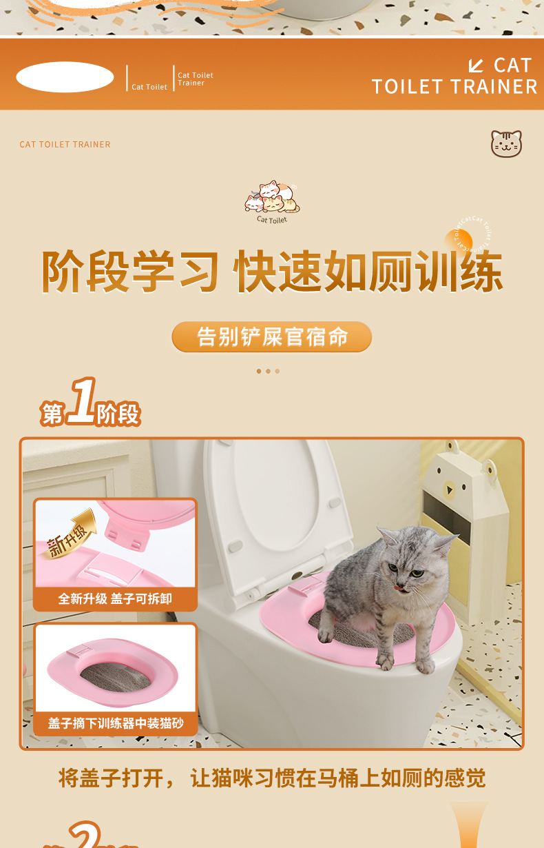 초보자 고양이 쓰레기 상자 대형 냄새 방지 및 분리형 세척 가능한 변기 고양이 화장실 트레이너 드롭 배송