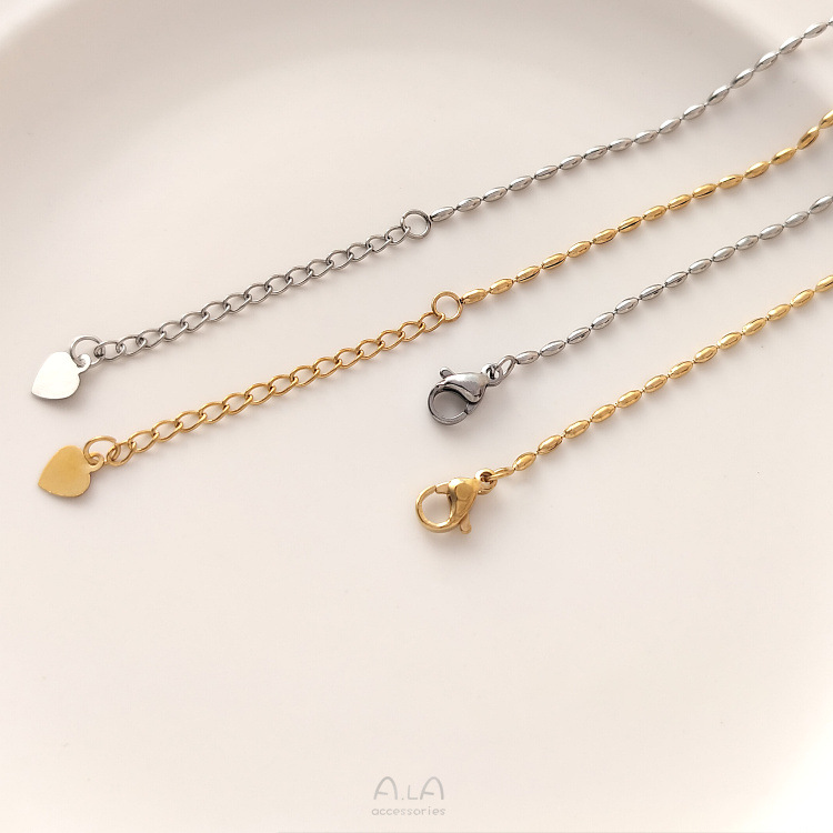 전기 도금 티타늄 스틸 트위스트 목걸이 블레이드 팔찌 쌀 비즈 쇄골 체인 수제 네이키드 체인 미니멀리스트 라이트 럭셔리 도금 18K 골드 목걸이