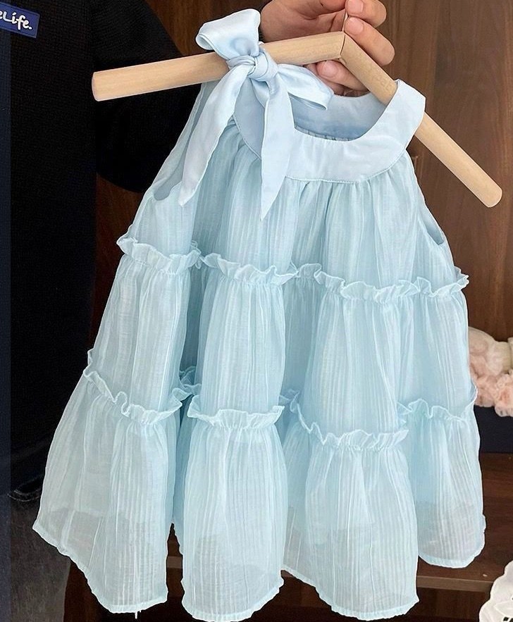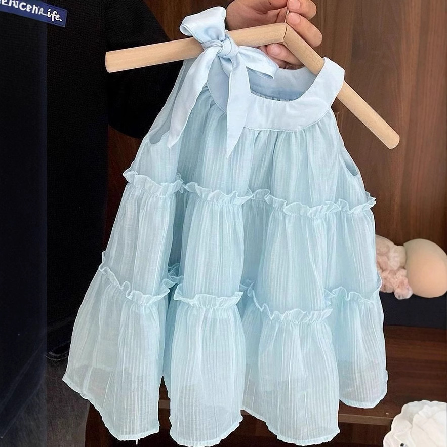 베이비 블루 공주 드레스 여자 여름 2025 여름 달콤한 새로운 민소매 스타일 조끼 스커트스토어 가기