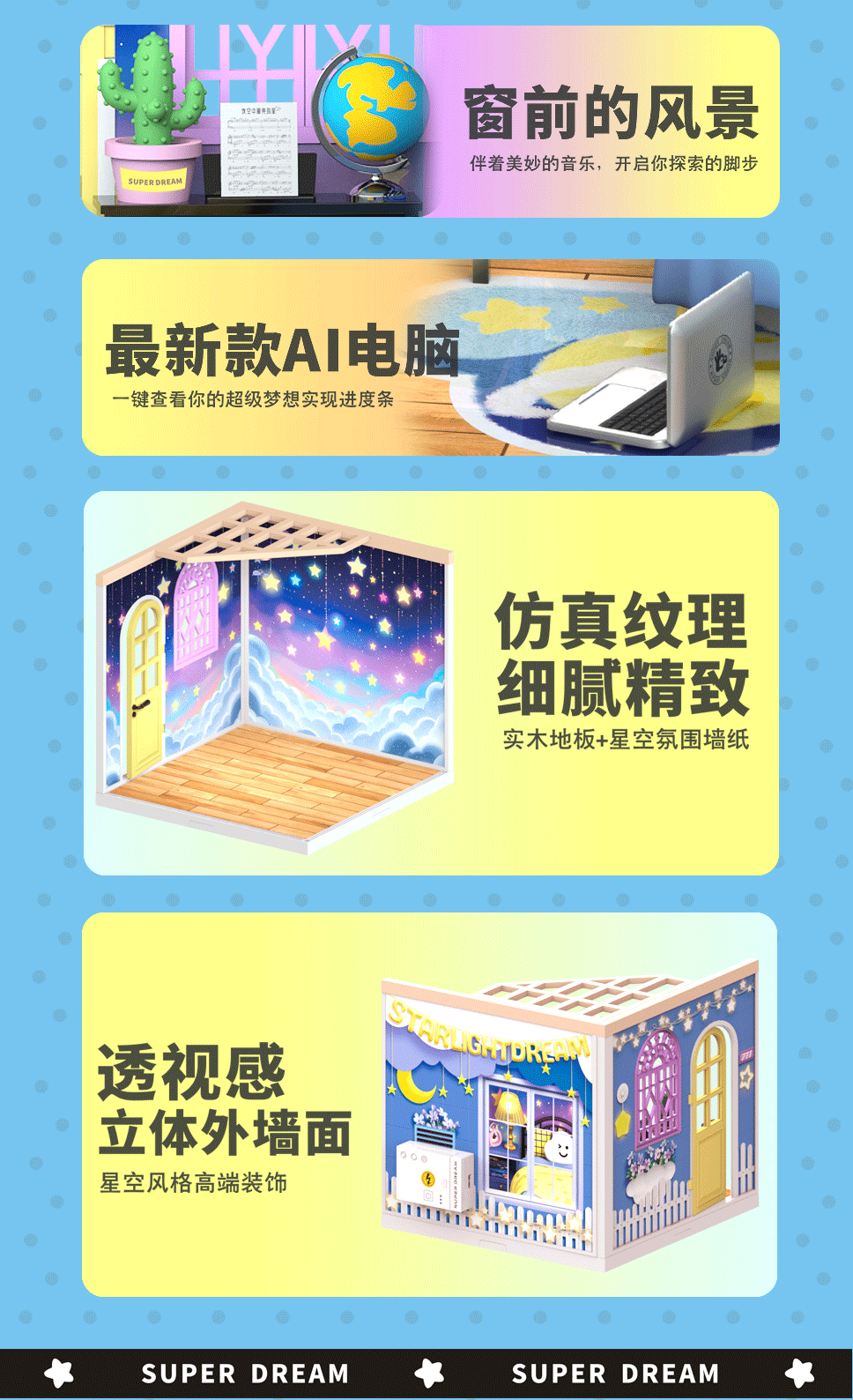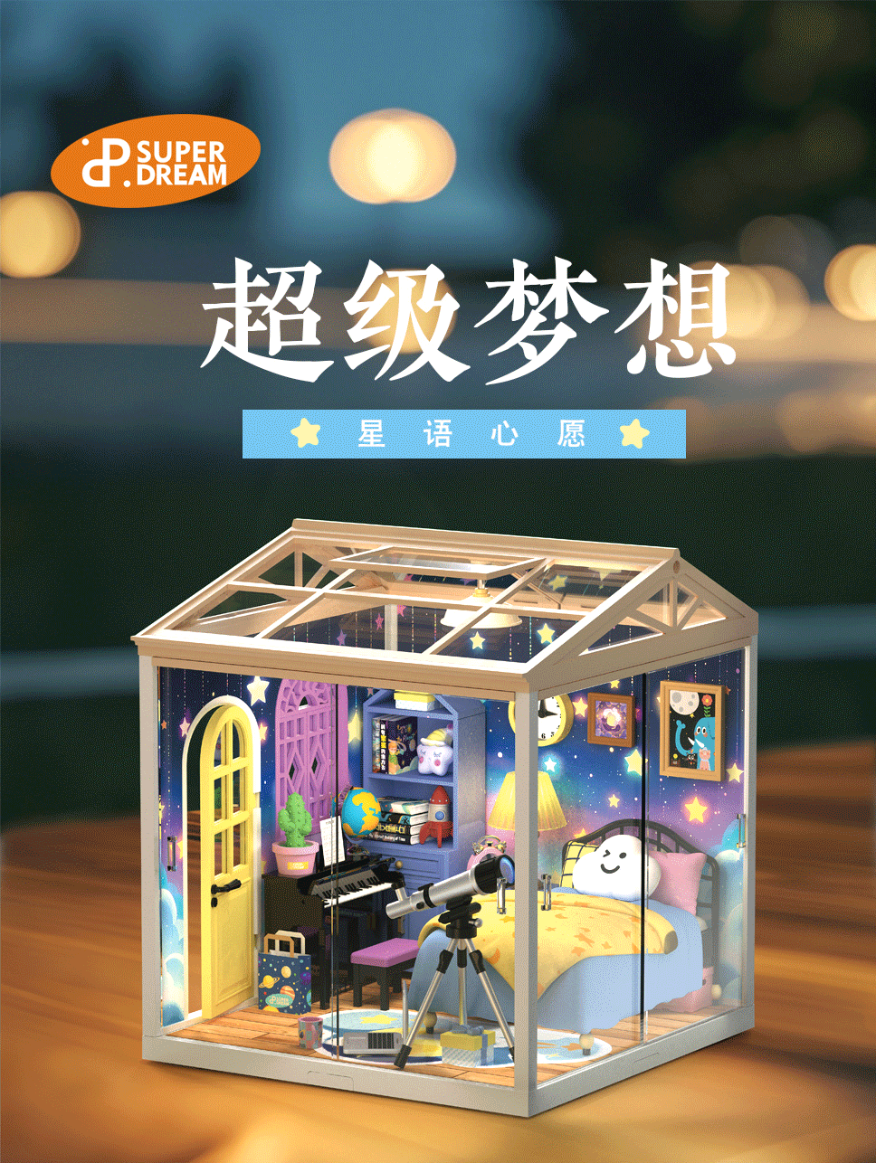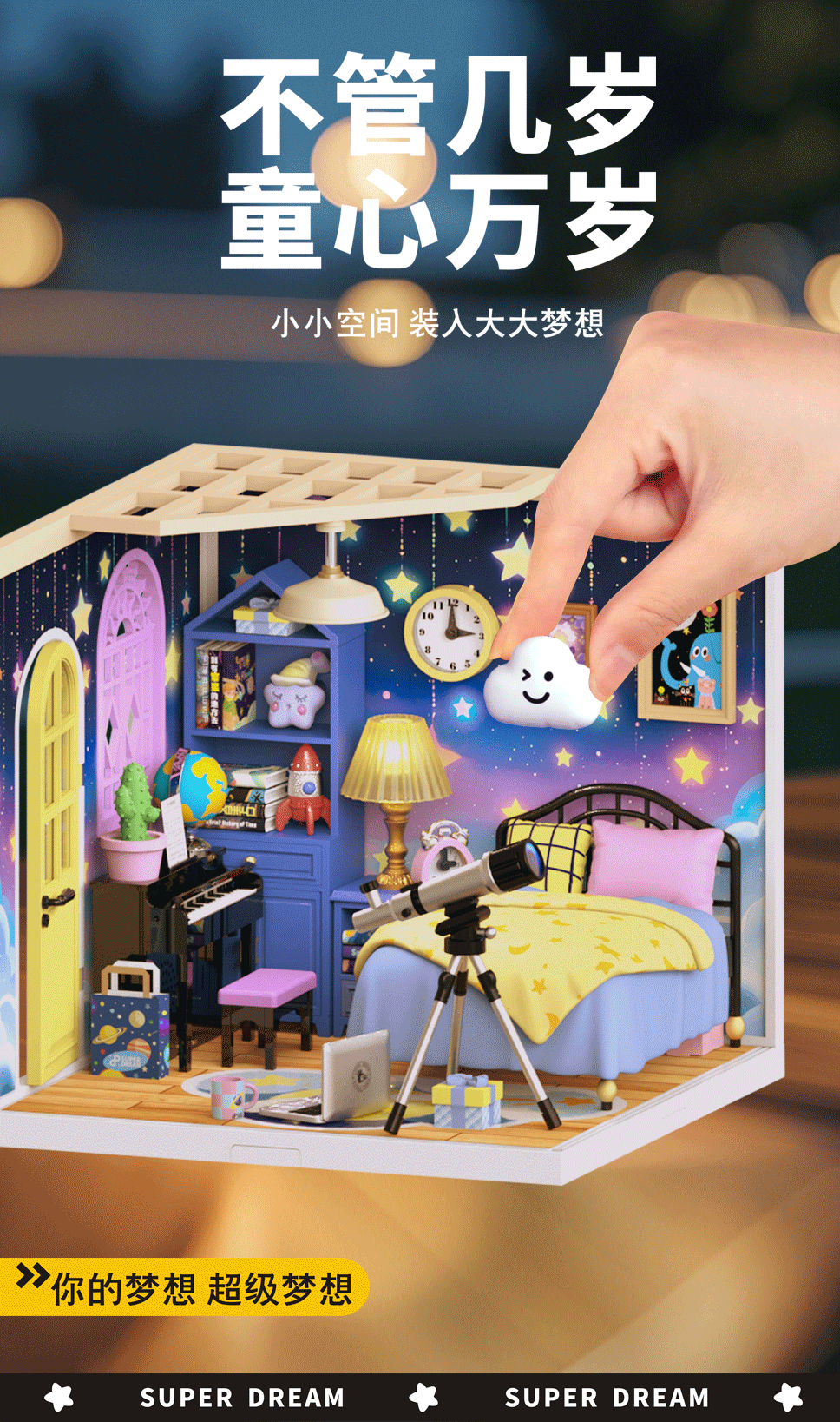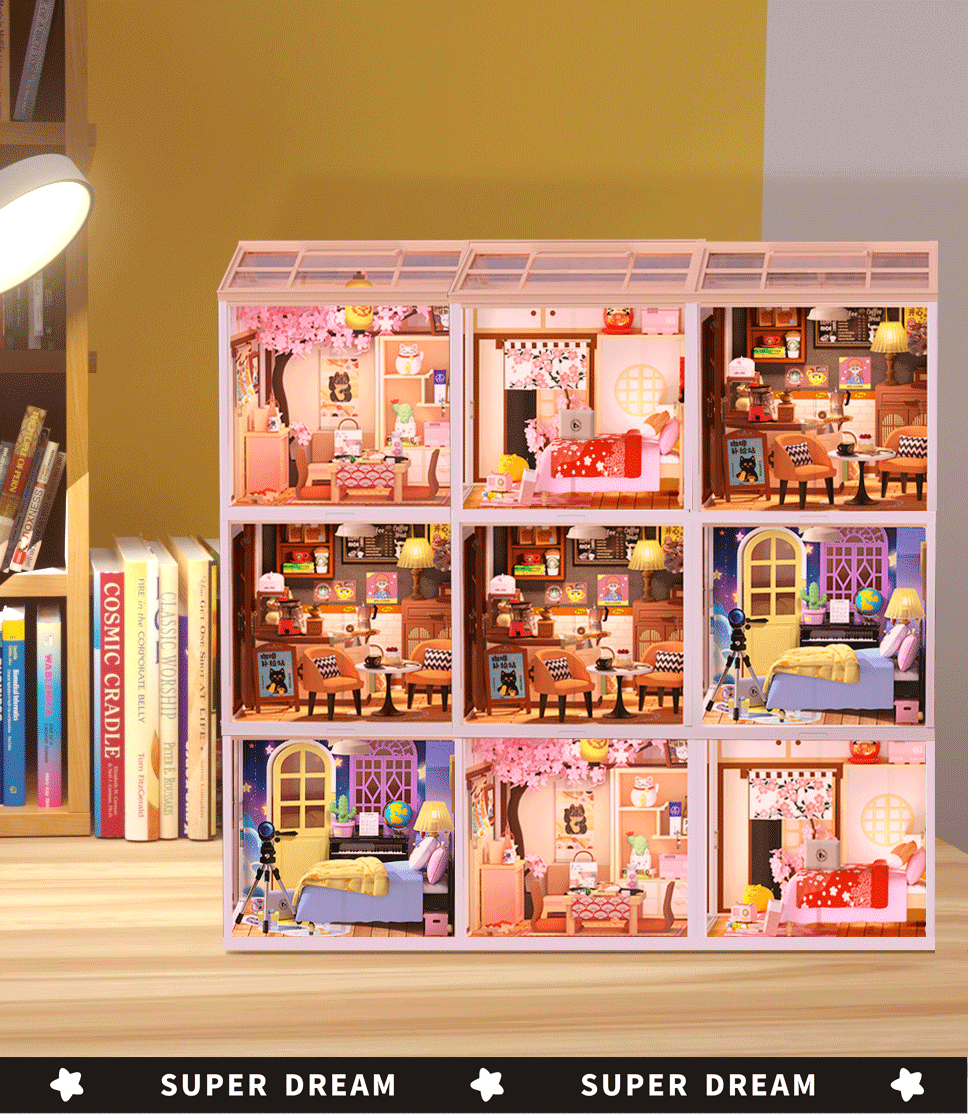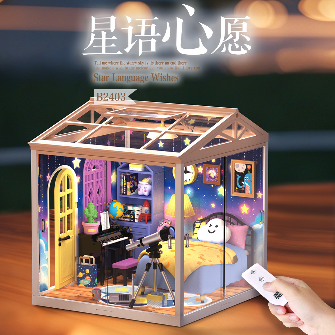 국경 간 DIY 캐빈 슈퍼 월드 조립 하우스 모델 소형 장면 상자 극장 여성을위한 생일 선물