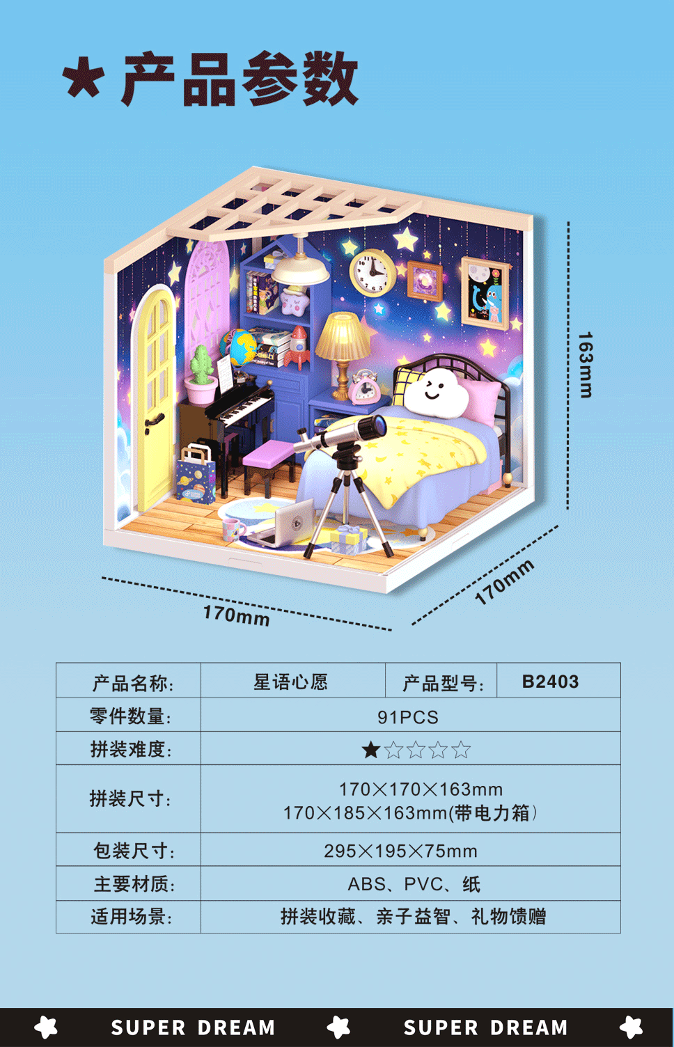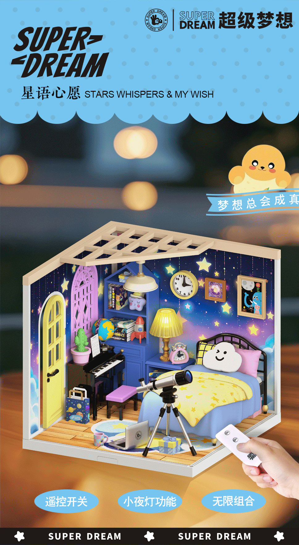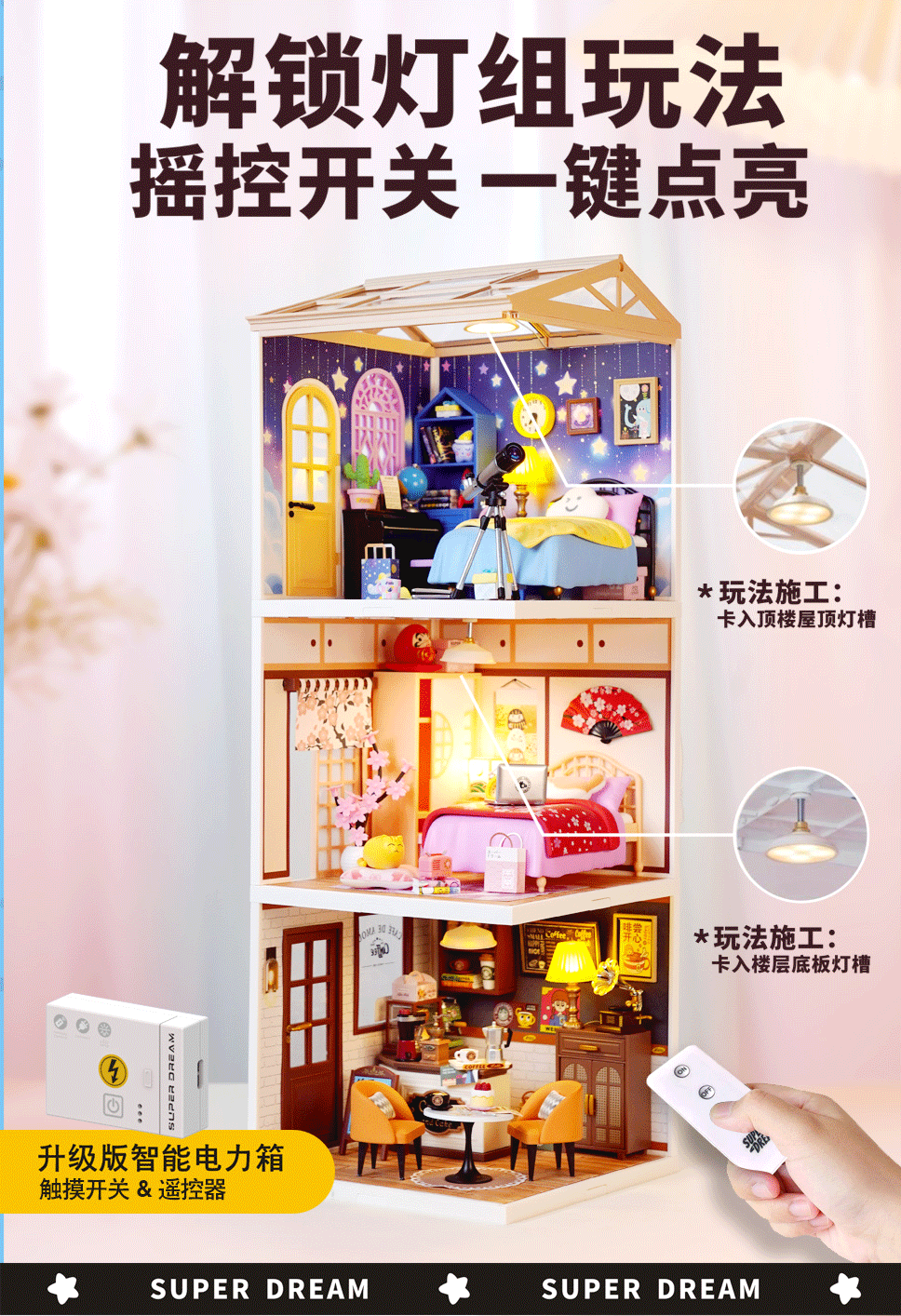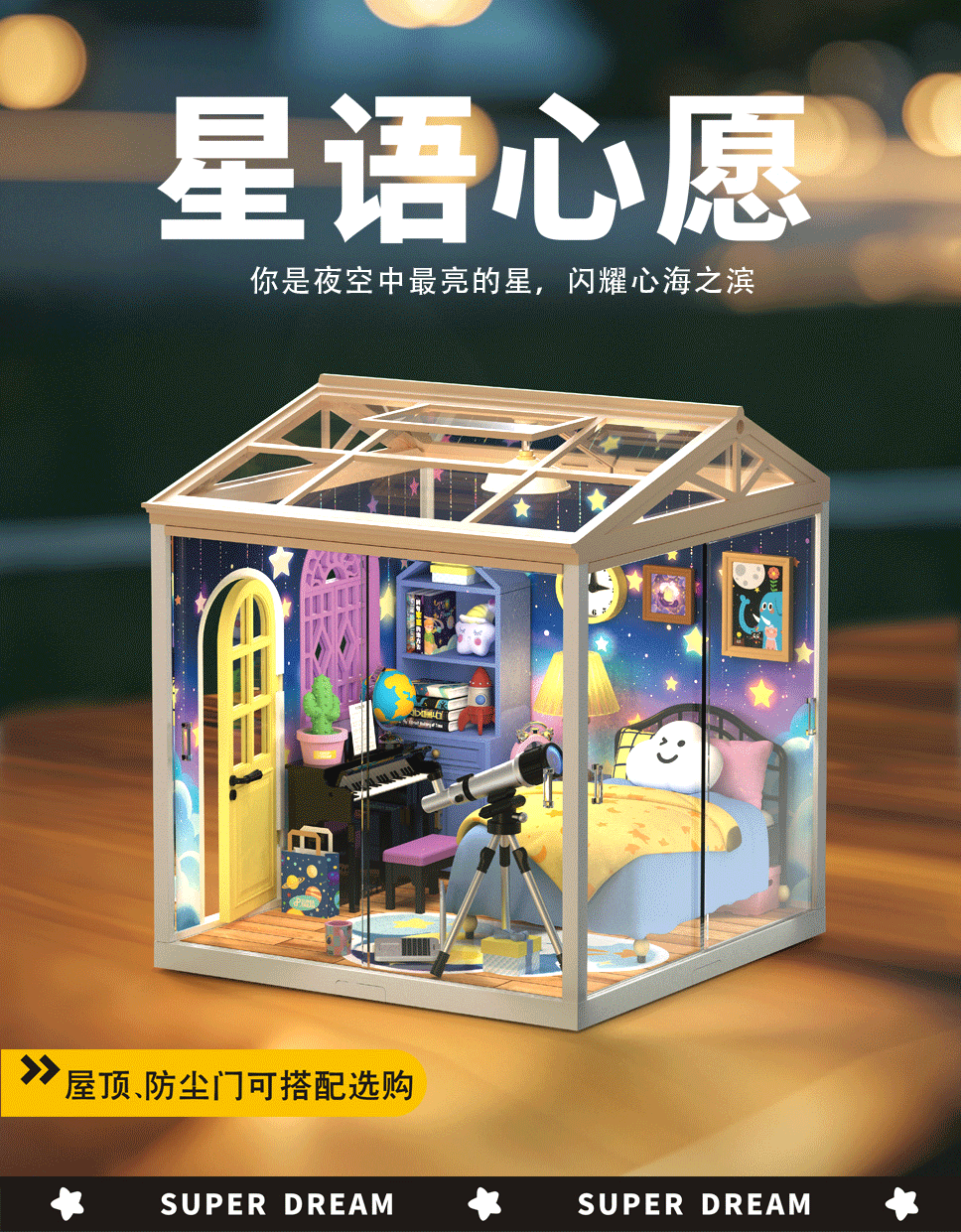 국경 간 DIY 캐빈 슈퍼 월드 조립 하우스 모델 소형 장면 상자 극장 여성을위한 생일 선물