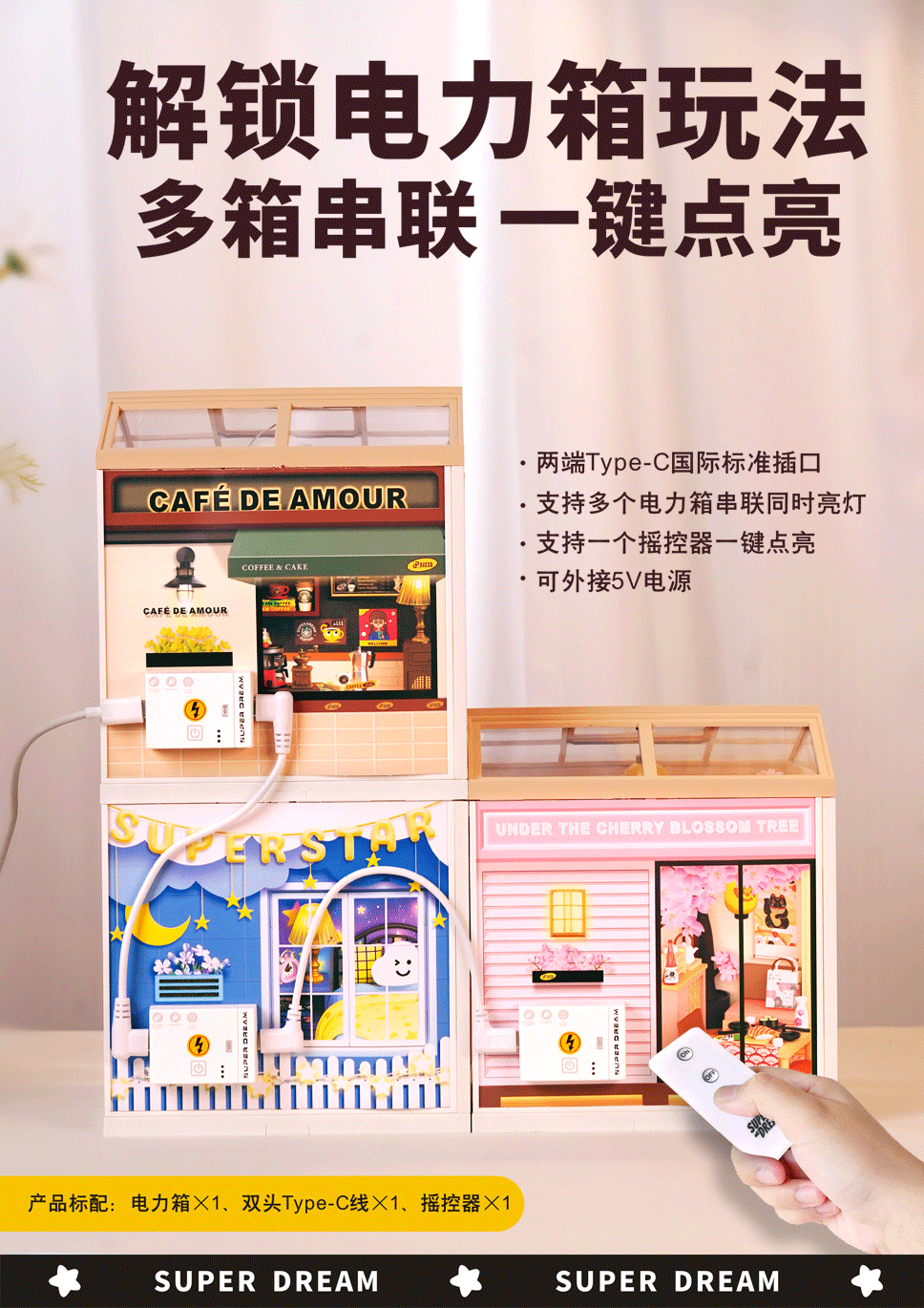 국경 간 DIY 캐빈 슈퍼 월드 조립 하우스 모델 소형 장면 상자 극장 여성을위한 생일 선물스토어 가기