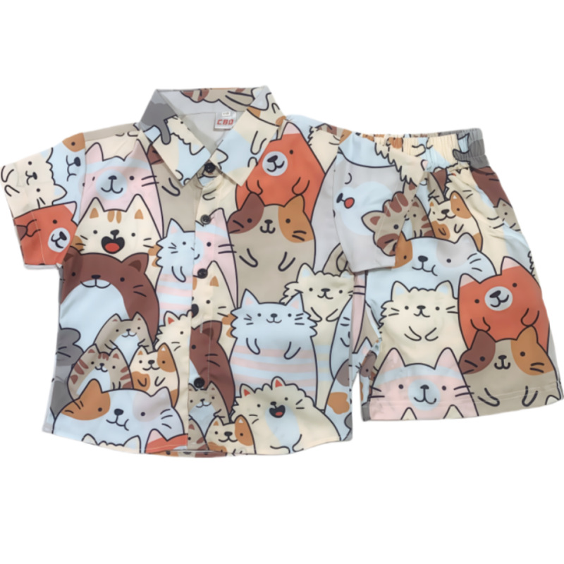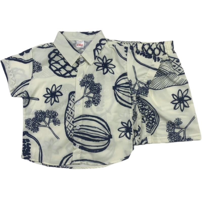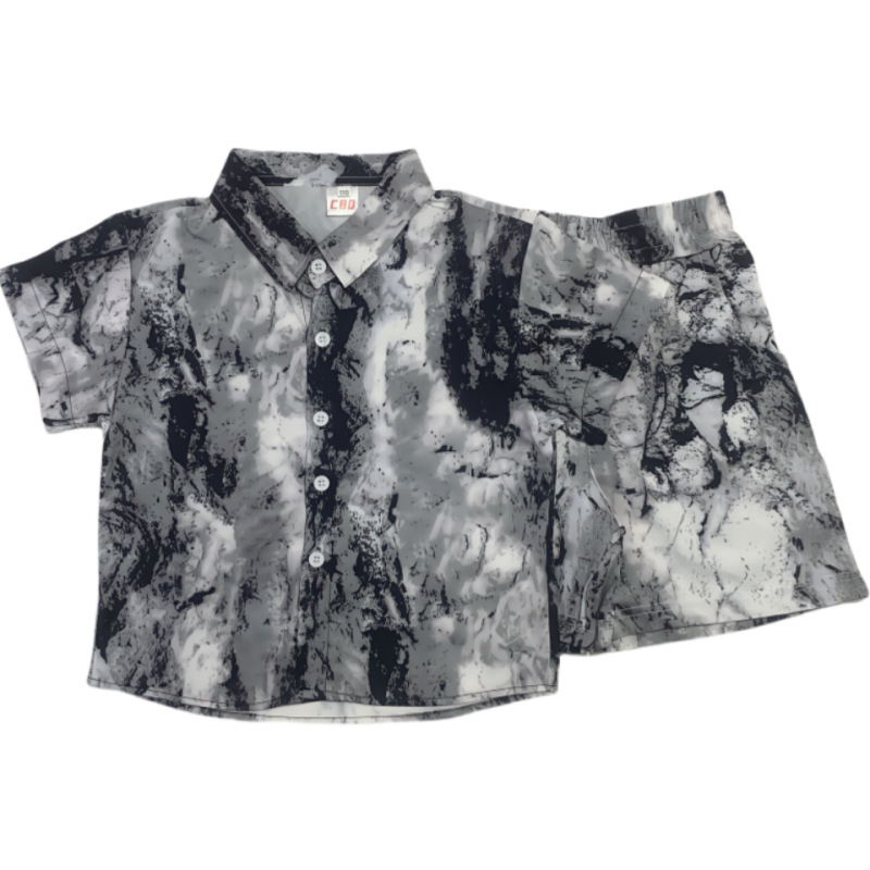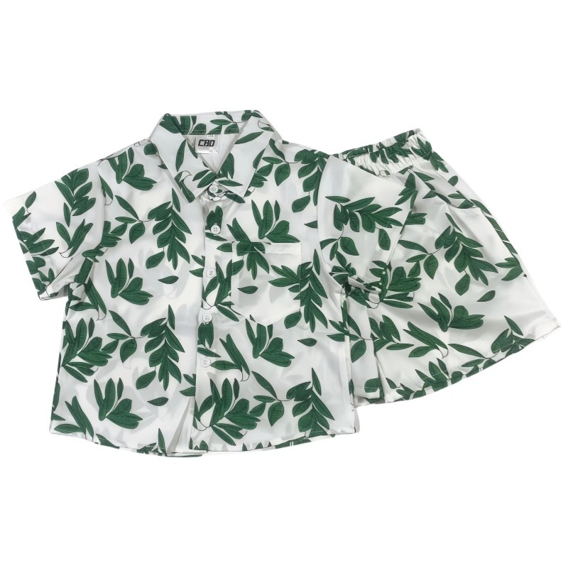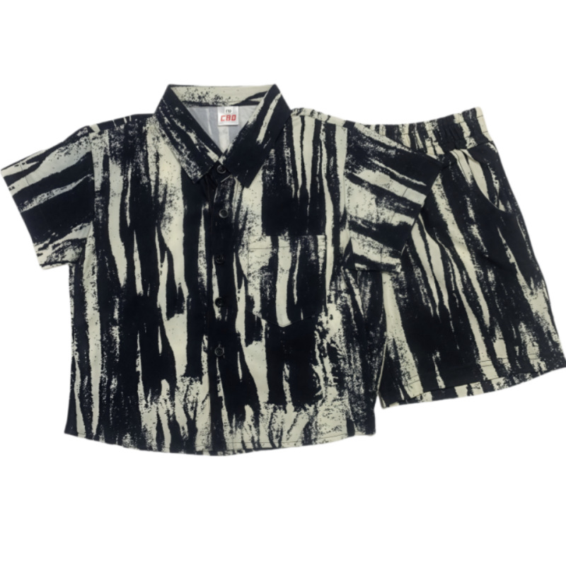 소년 여름 정장 2025 새로운 스타일 중대형 소년의 멋지고 세련된 얇은 셔츠 반팔 투피스 세트 트렌드스토어 가기