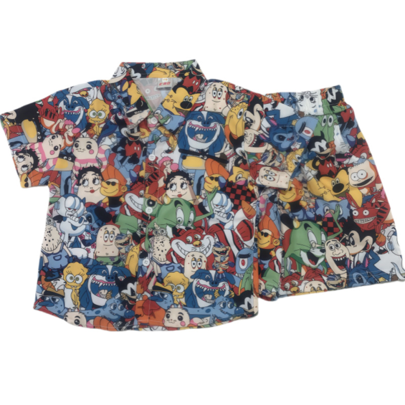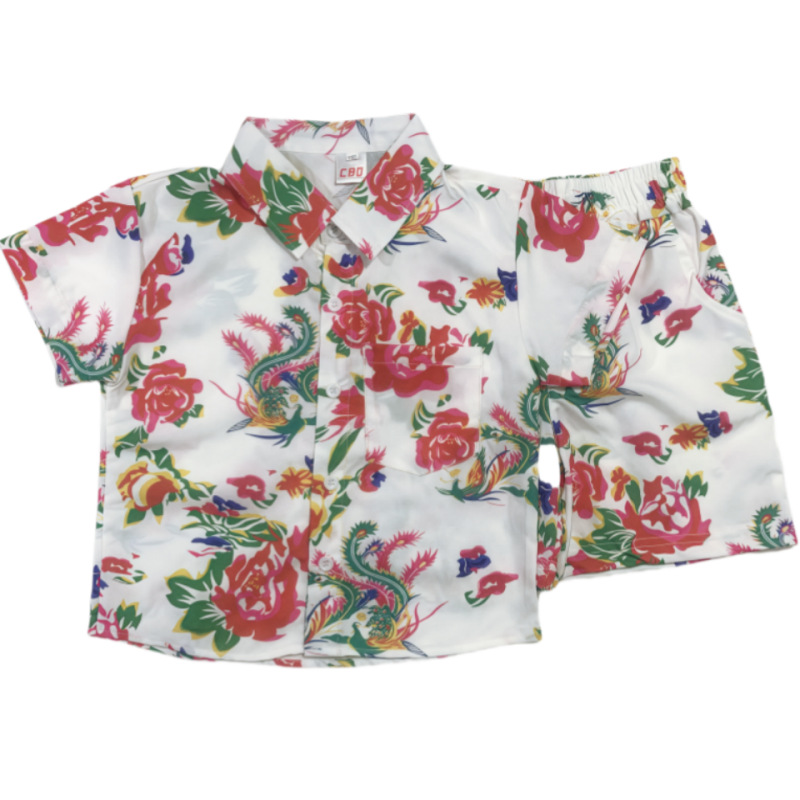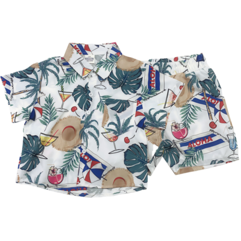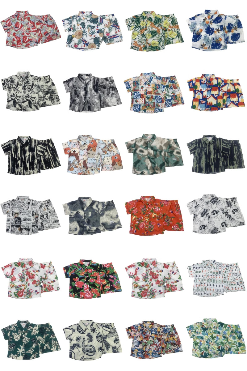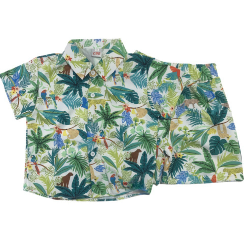 소년 여름 정장 2025 새로운 스타일 중대형 소년의 멋지고 세련된 얇은 셔츠 반팔 투피스 세트 트렌드스토어 가기