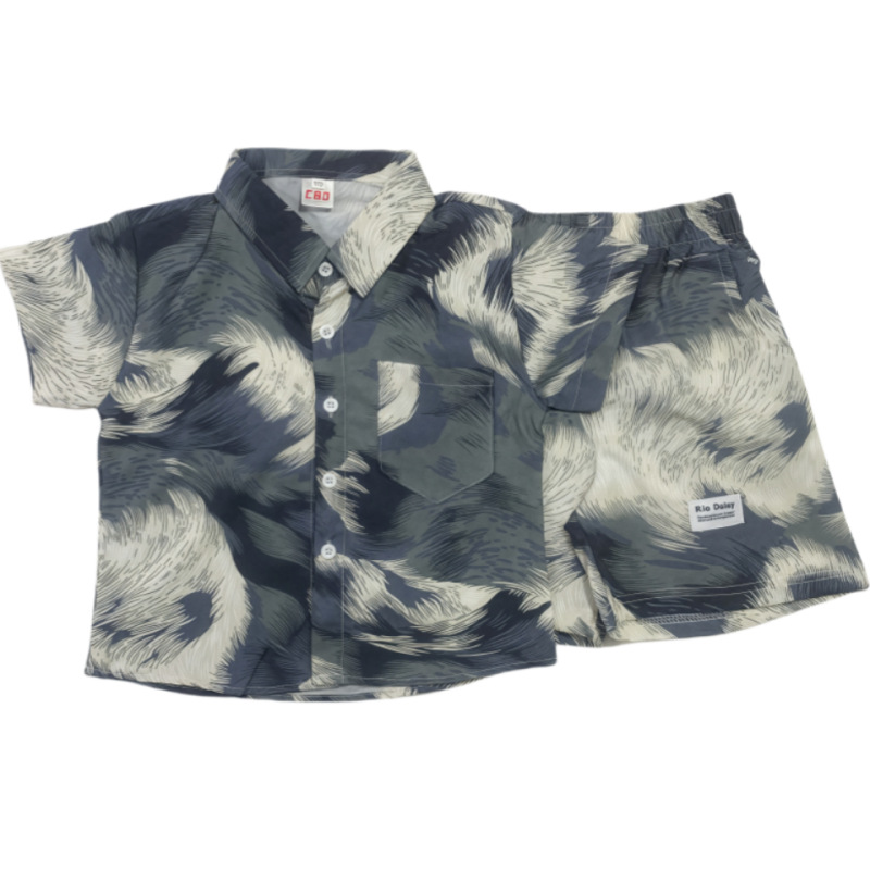 소년 여름 정장 2025 새로운 스타일 중대형 소년의 멋지고 세련된 얇은 셔츠 반팔 투피스 세트 트렌드