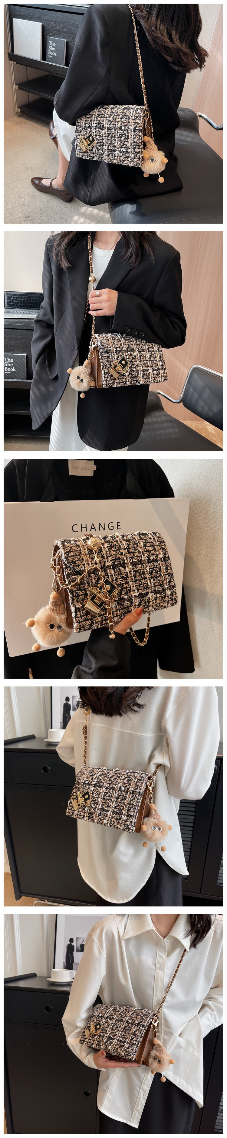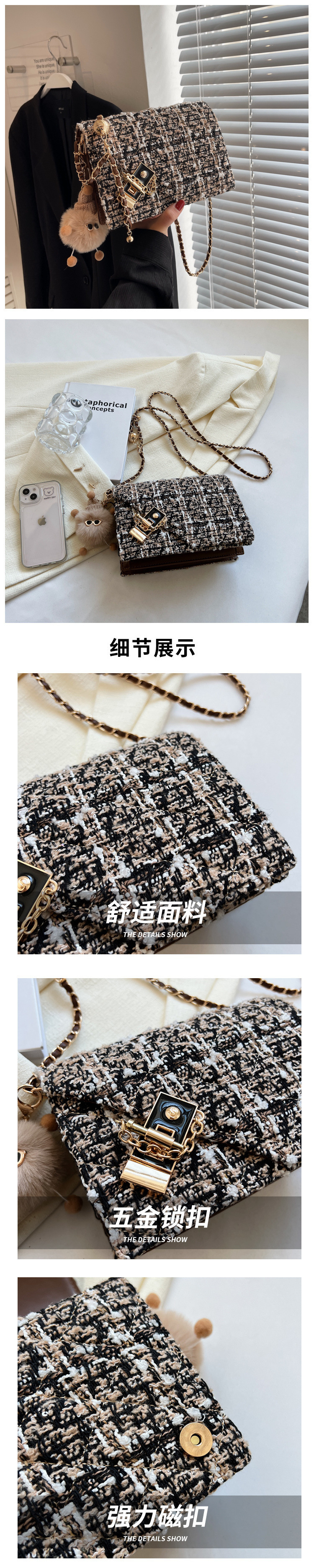 여성을위한 질감이있는 작은 가방 2025 새로운 유행 한국어 버전 다용도 격자 무늬 숄더 백 체인 크로스 바디 백 모직 작은 사각형 가방