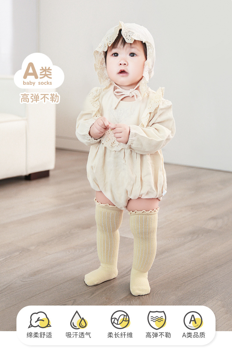 신생아 긴 양말, 봄과 가을 통기성 면 양말, 레이스, 소년 소녀, 여름 높은 무릎 위 모기 방지 양말스토어 가기